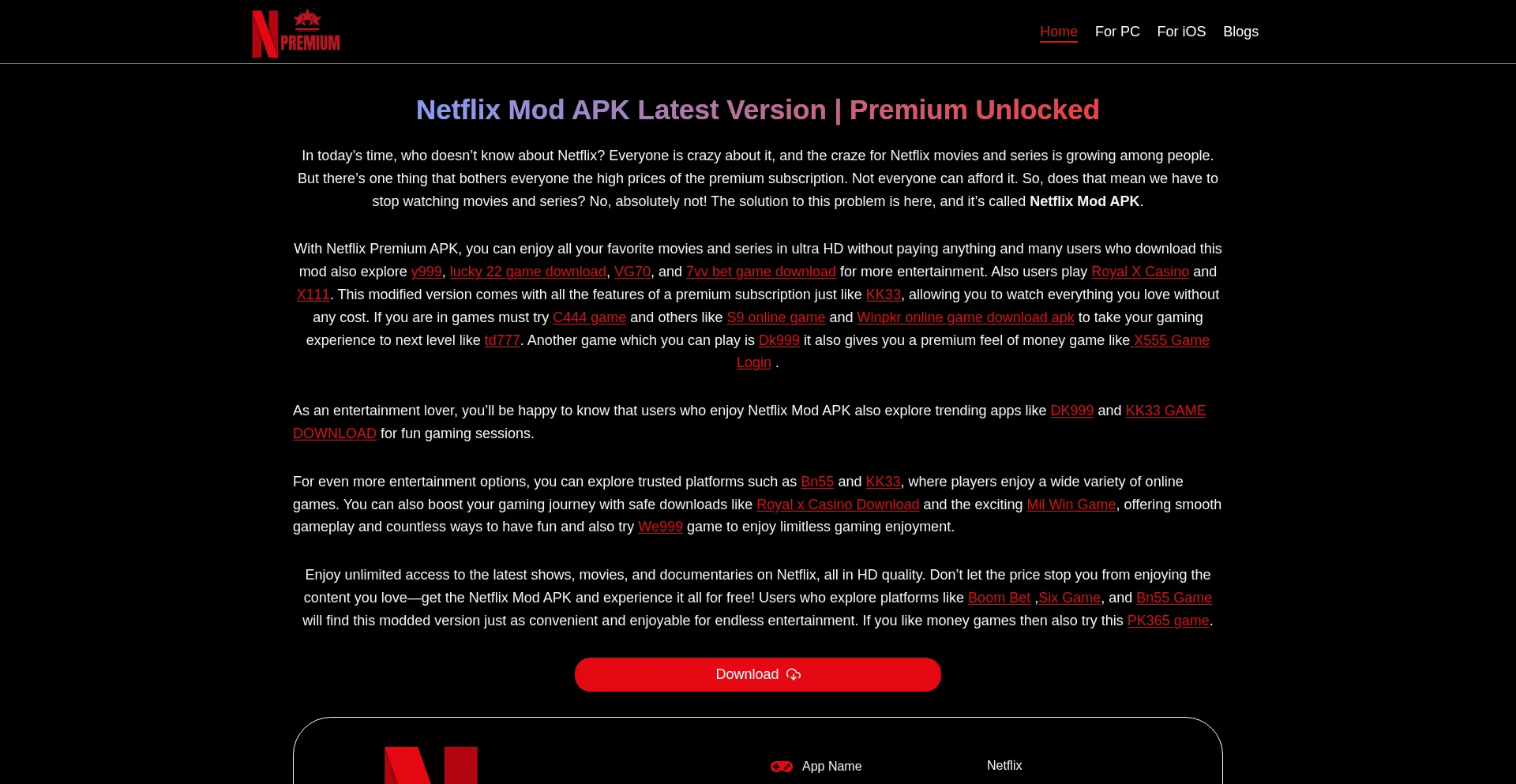 Netflix mod apk is unlocked premium plus version of Netflix which offer free VIP Plus subscription. Download Netflix to enjoy Ultra HD movies and series.