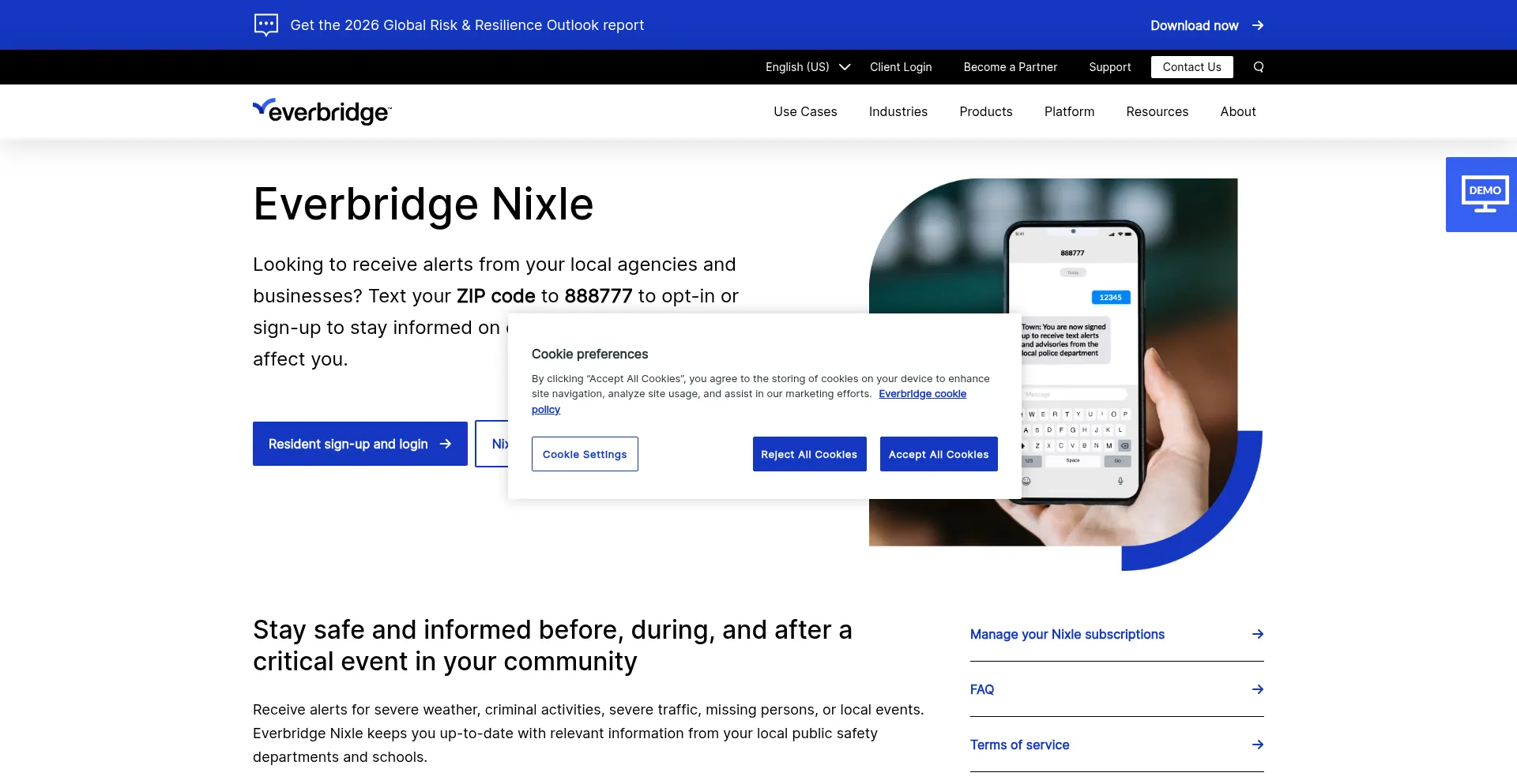 Public safety alerts for weather, criminal activities, traffic, and missing persons. Everbridge Nixle provides information from your local public safety departments and schools.
