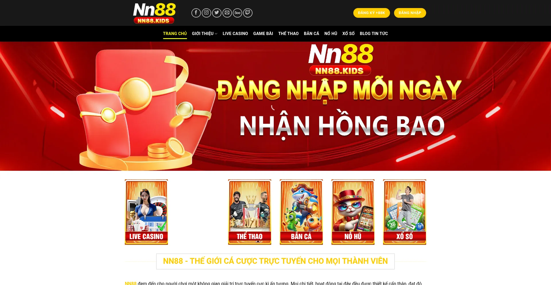 NN88 – Cổng cá cược chính thức tại nn88.com 2026. Trải nghiệm thể thao, casino, slot, bắn cá siêu mượt và nhận ngay +88K cho thành viên mới.