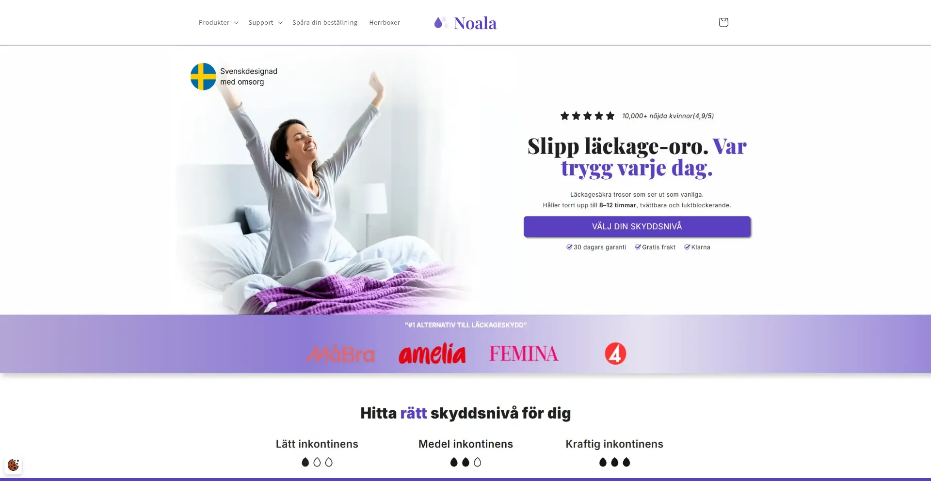 Noala erbjuder eleganta, återanvändbara underkläder med läckageskydd – designade för kvinnor som vill känna sig trygga, bekväma och självsäkra varje dag. Diskret, hå...