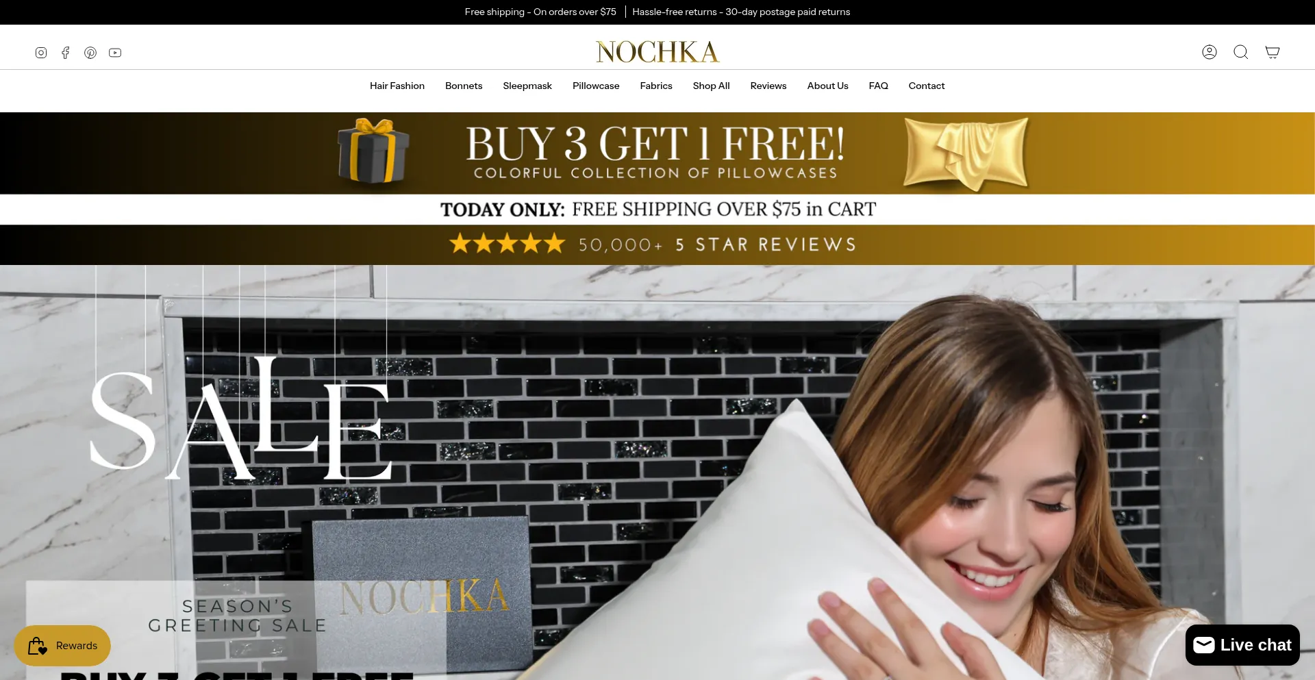 网站上存在社交媒体链接表明 nochka.com 在社交媒体上维护官方账户,这是可信度和参与度的积极信号。