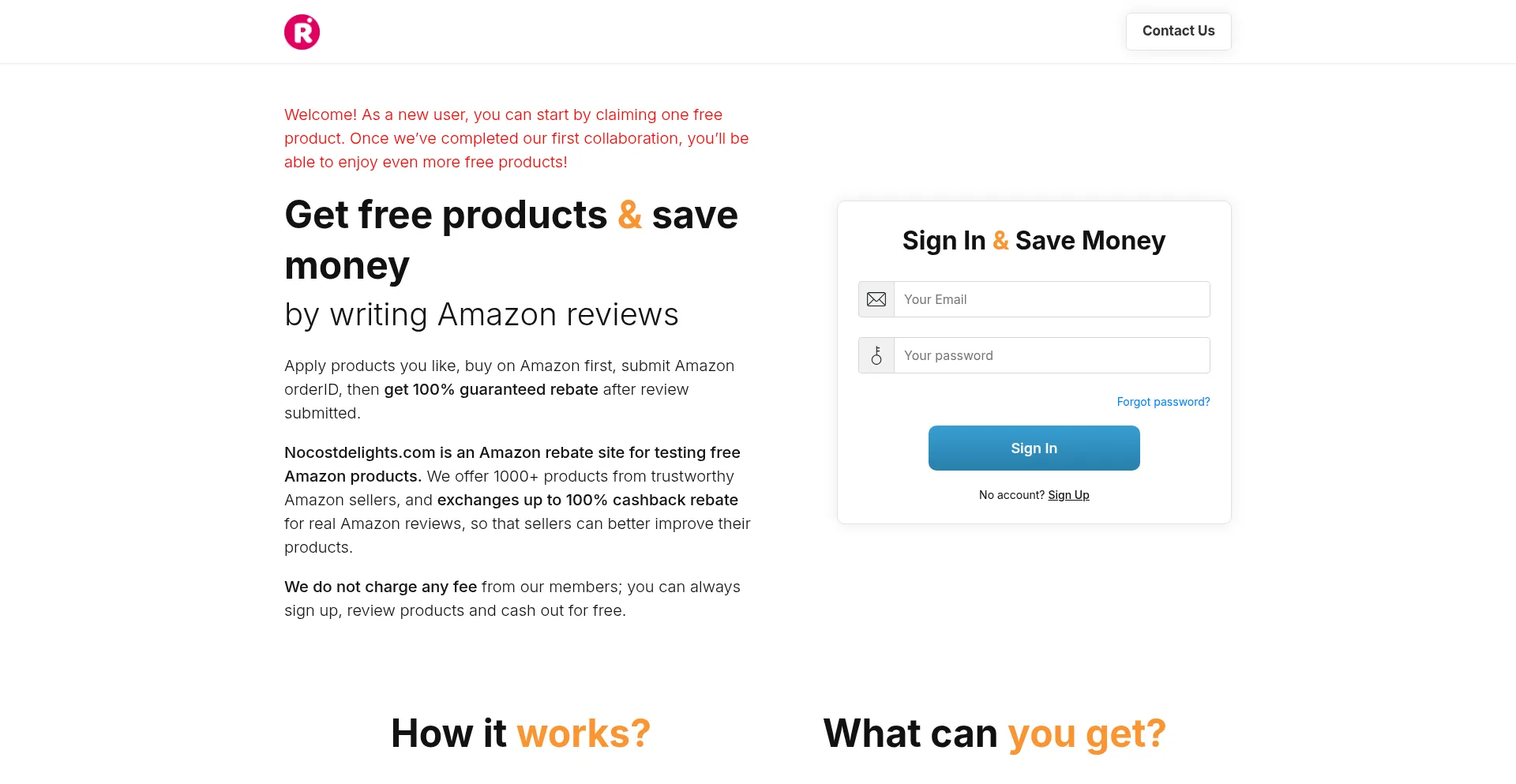 Join nocostdelights.com now to start make and save money by testing Amazon products with up to 100% rebate!
