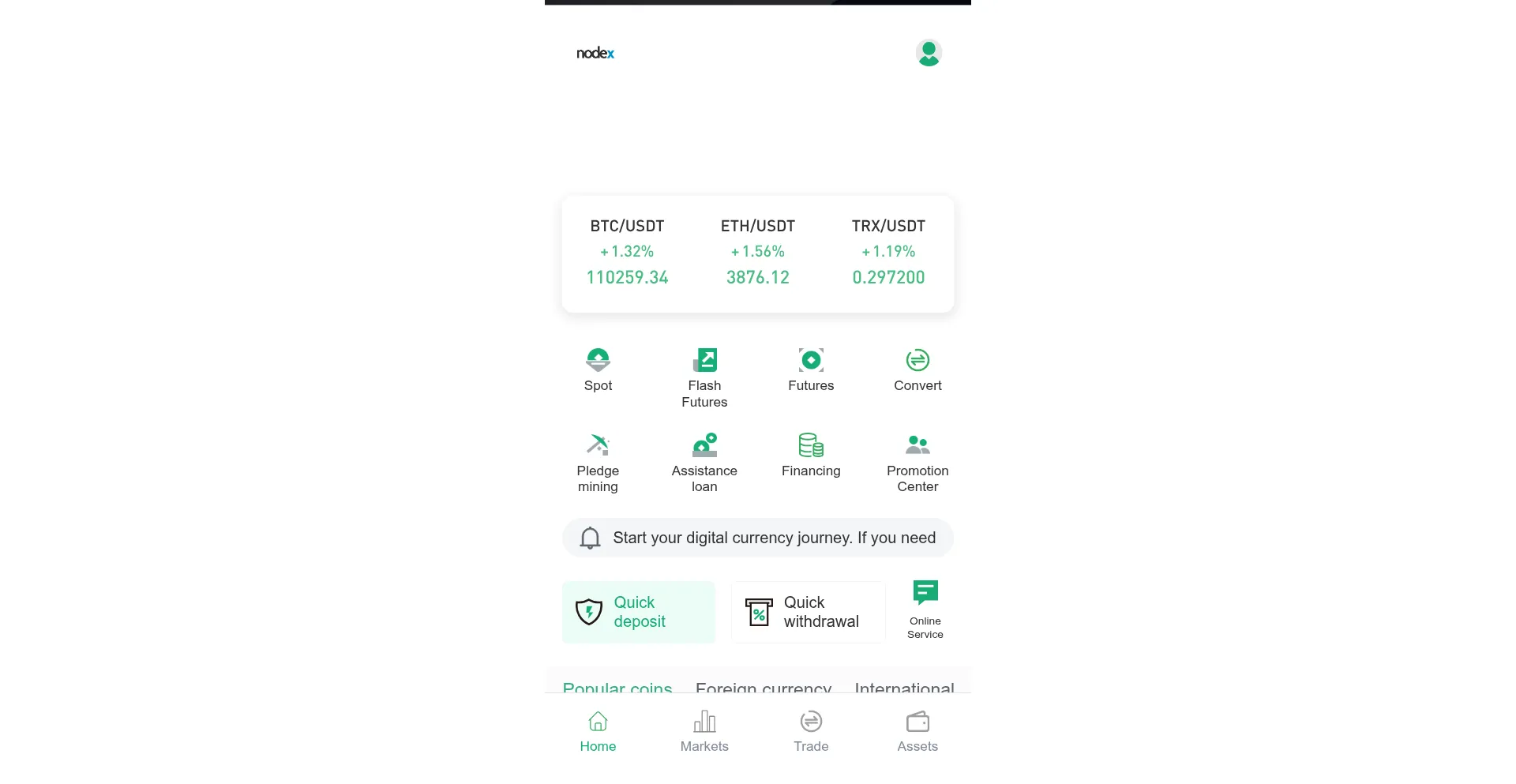 网站 nodexcoin.com 被配置为一个带有移动应用功能的网络应用。用户可以直接将该网站安装到设备的桌面上,以快速访问并享受类似移动应用的体验。