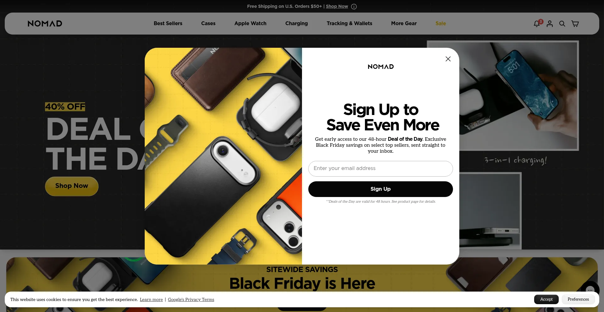 该网站实现符合GDPR或CCPA等隐私法规的cookie同意机制。这表明 nomadgoods.com 遵守数据保护标准并为用户提供对个人数据收集实践的控制。