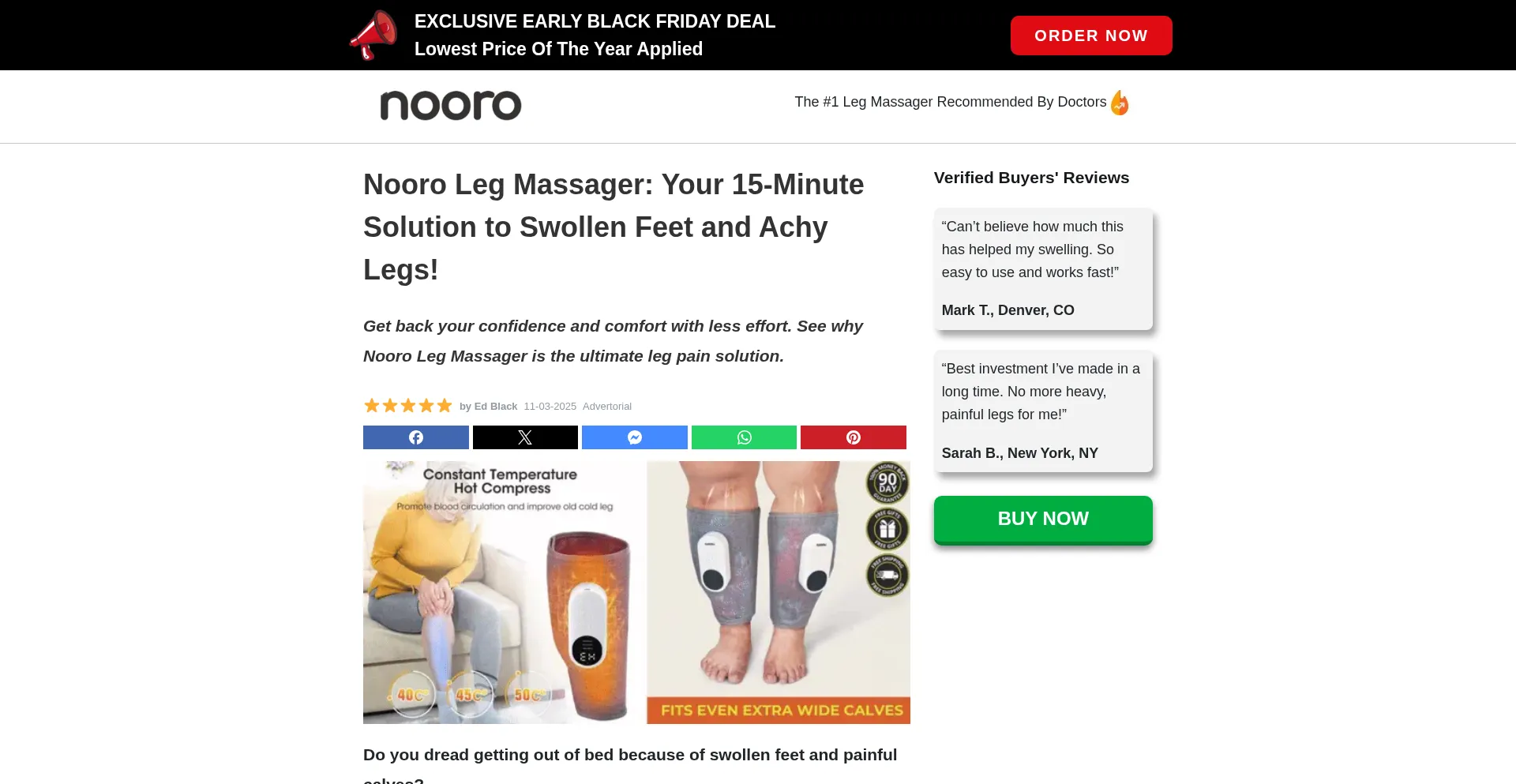 Is leg swelling ruining your day? The Nooro Leg Massager provides fast, lasting and cost-effective relief for tired legs!