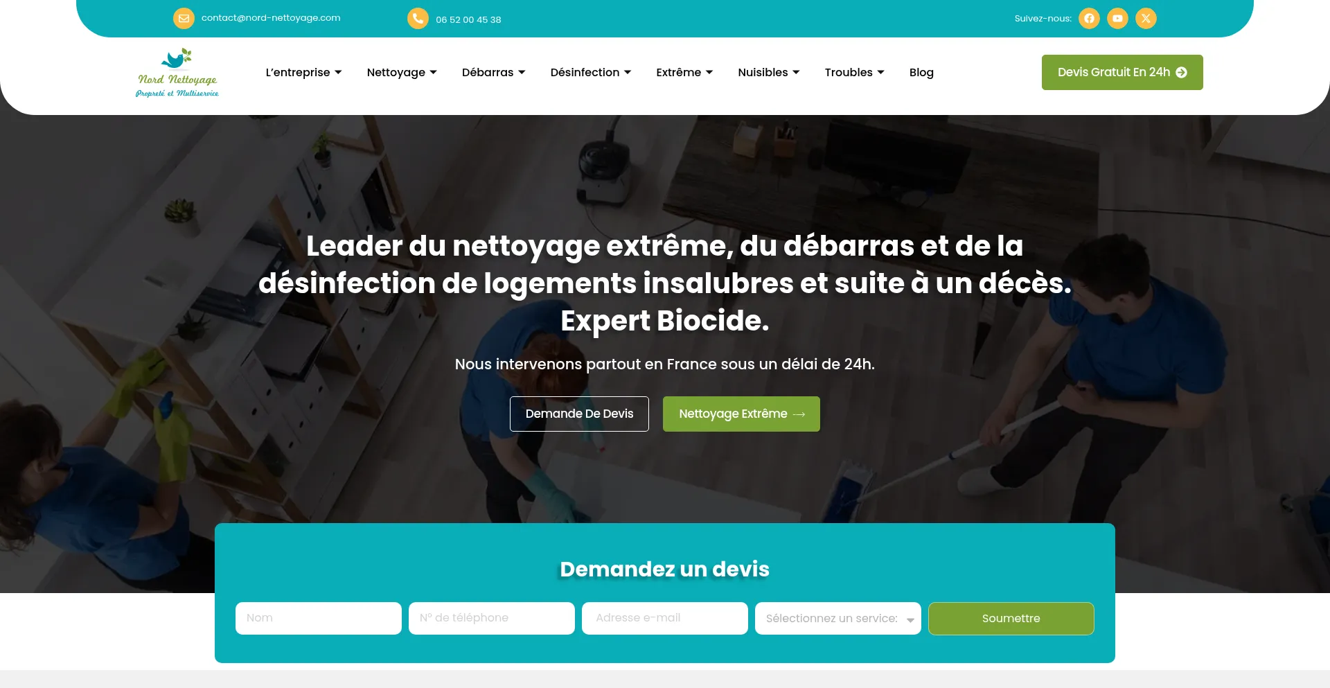 网站上存在社交媒体链接表明 nord-nettoyage.net 在社交媒体上维护官方账户,这是可信度和参与度的积极信号。