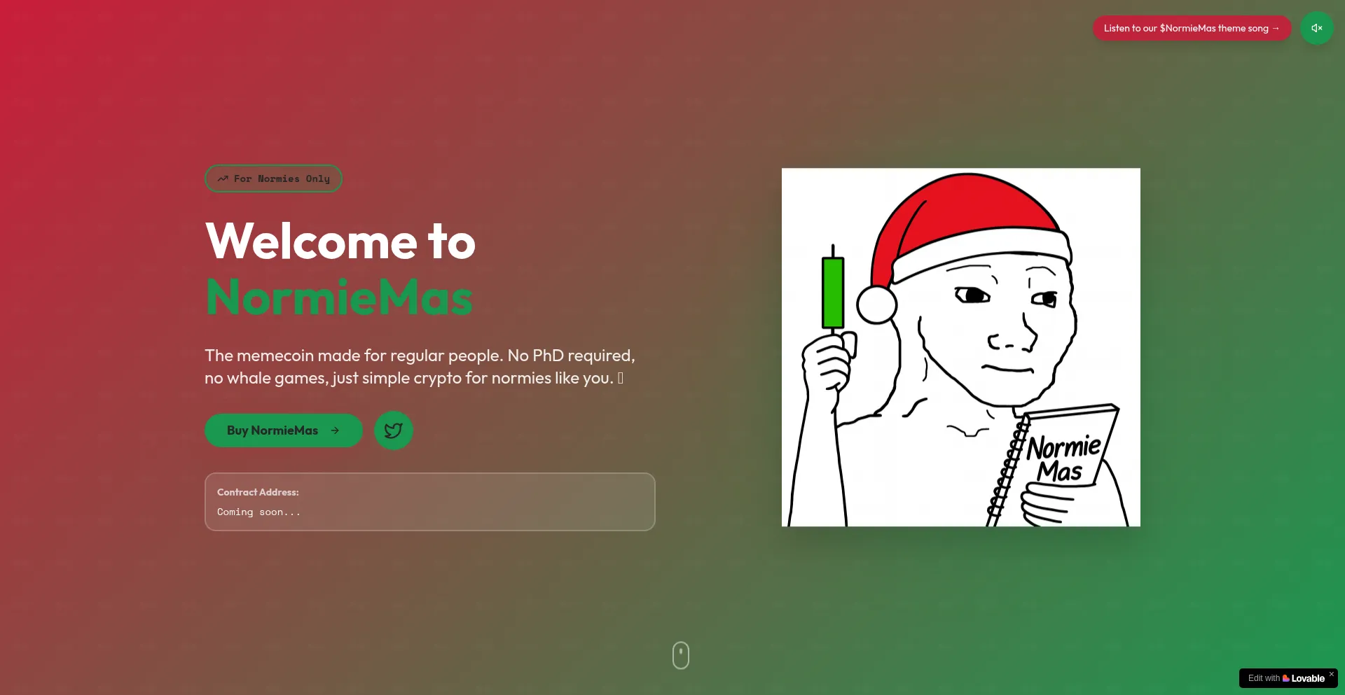 NormieMas is the crypto for normies. No complicated stuff, no whale games, just simple gains for everyday traders. 🎄