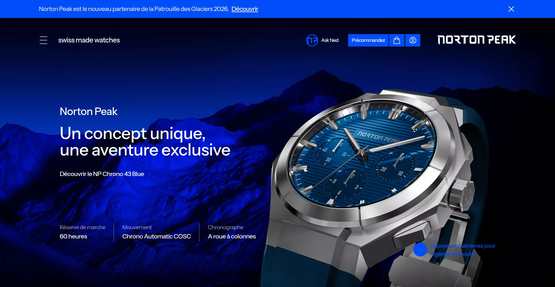 Norton Peak est une marque horlogère suisse fondée en 2025, née d’un rêve ambitieux : créer une montre d’exception et une expérience hors du commun.