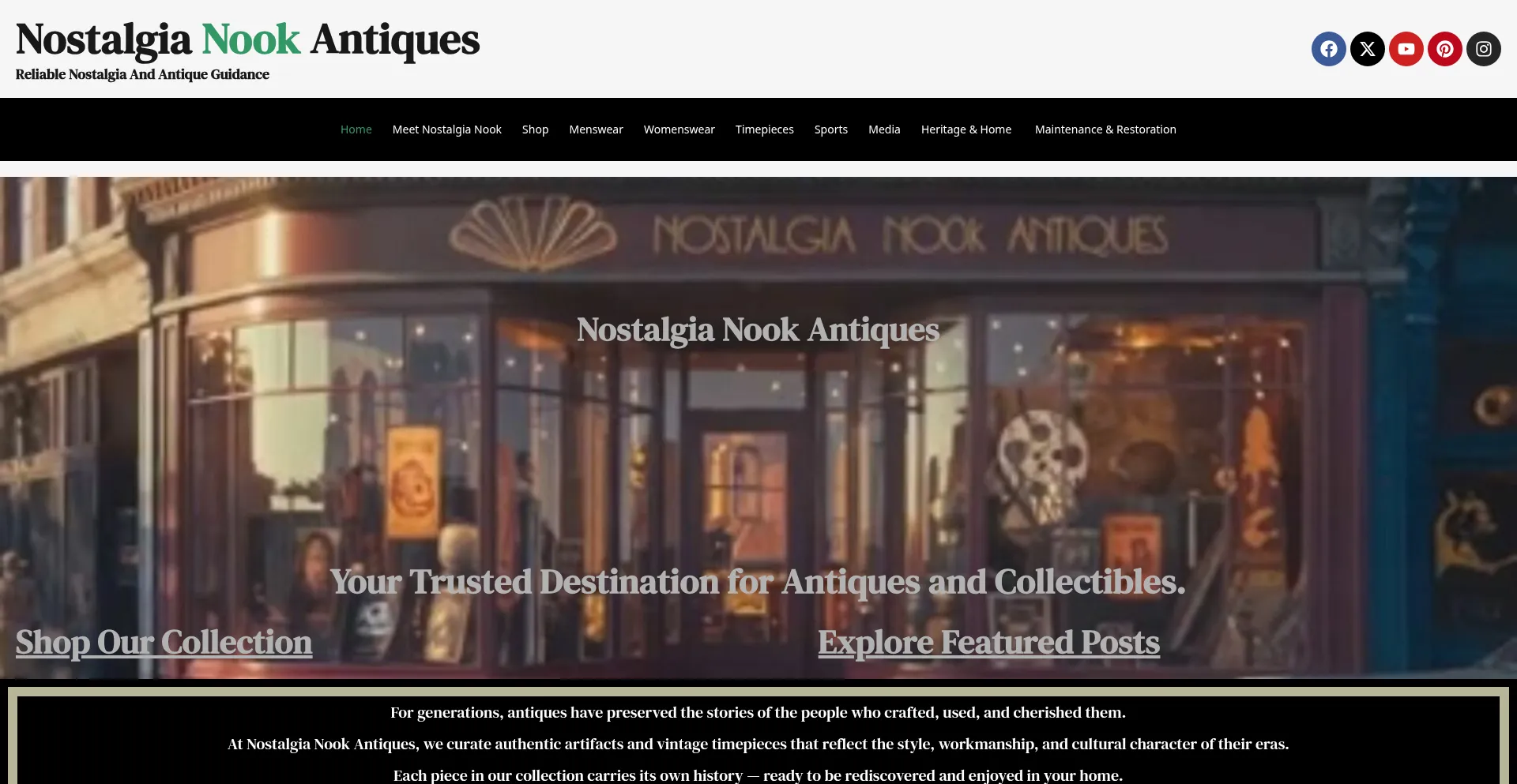 网站上存在社交媒体链接表明 nostalgianookantiques.com 在社交媒体上维护官方账户,这是可信度和参与度的积极信号。