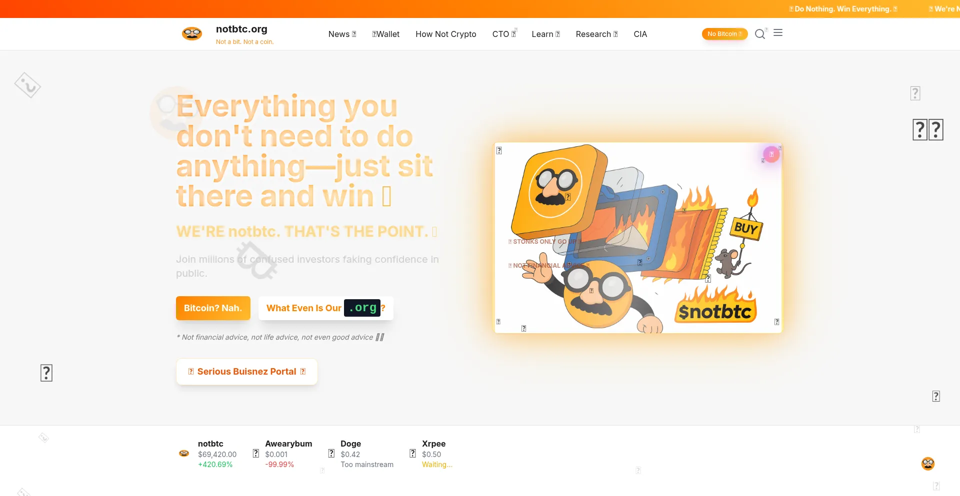 NOTBTC — the meme coin that delivers nothing and promises less. Join millions of confused investors faking confidence in public.