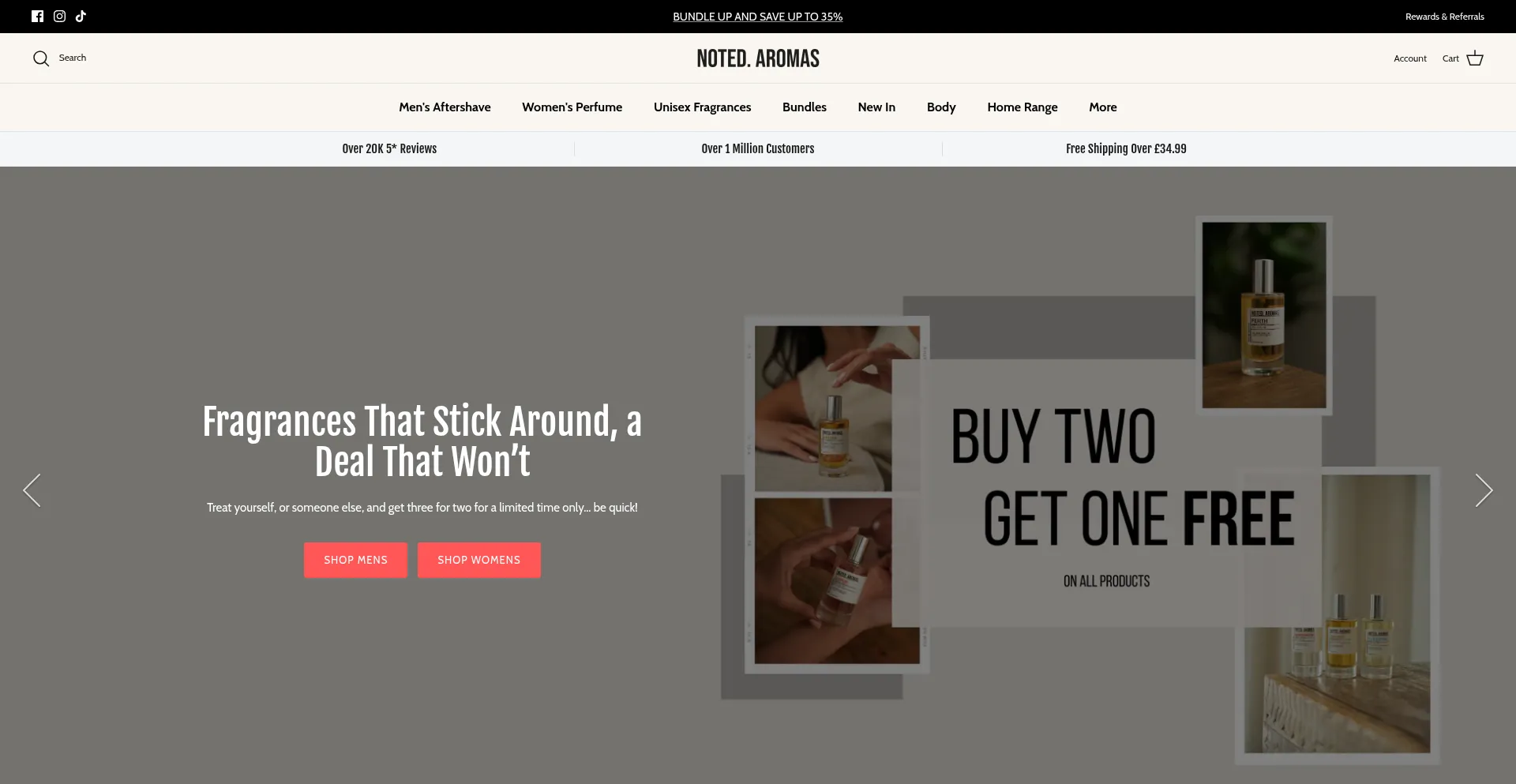 网站上存在社交媒体链接表明 notedaromas.co.uk 在社交媒体上维护官方账户,这是可信度和参与度的积极信号。