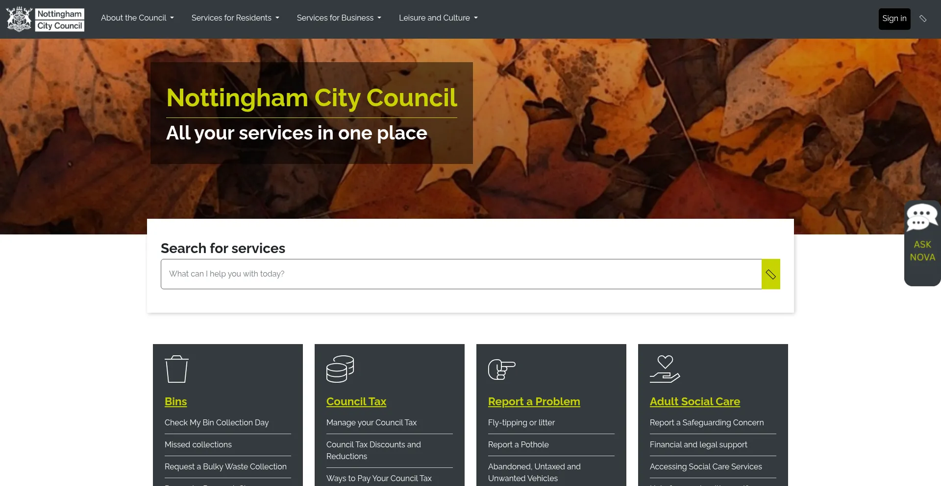 nottinghamcity.gov.uk 使用 Bootstrap,这是一个广泛采用的开源响应式网页开发框架。Bootstrap 通过标准化组件和样式实现移动友好界面的高效创建。