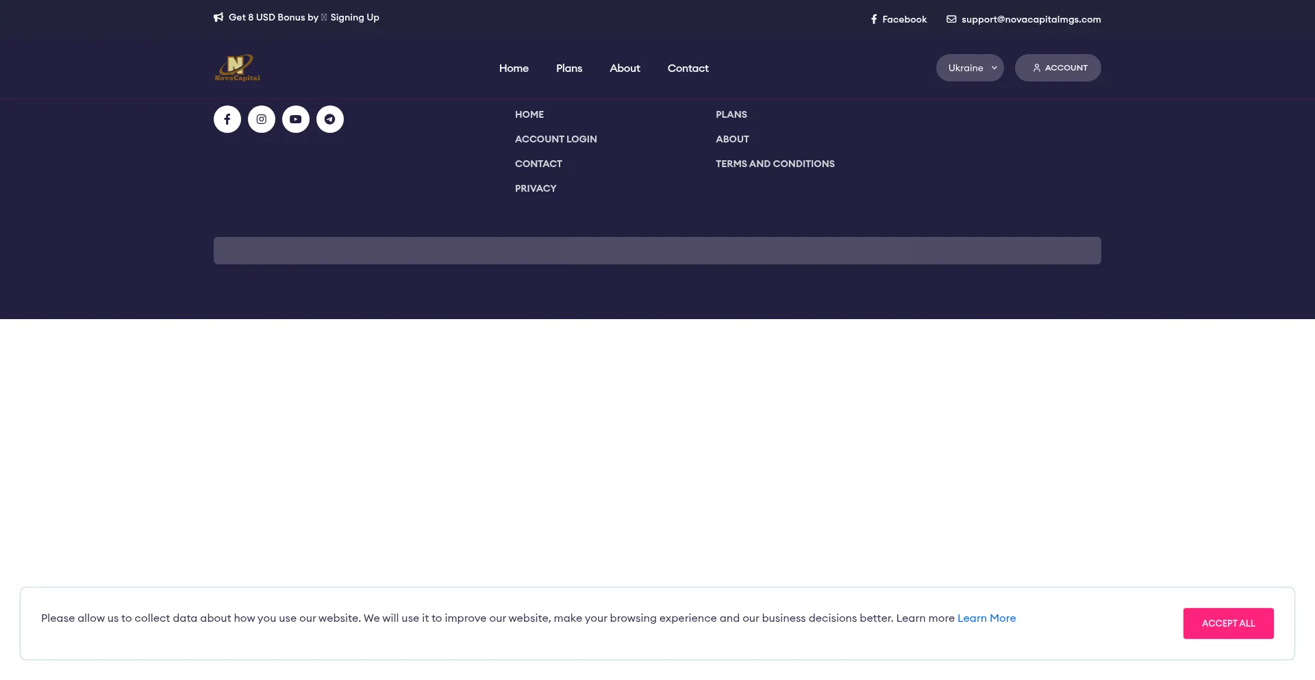 分析显示 novacapitalmgs.com 显示社交媒体图标或链接,但不连接到合法的社交媒体档案。这种欺骗性做法通常用于创造虚假合法性,代表需要立即谨慎的欺诈意图的重要指标。