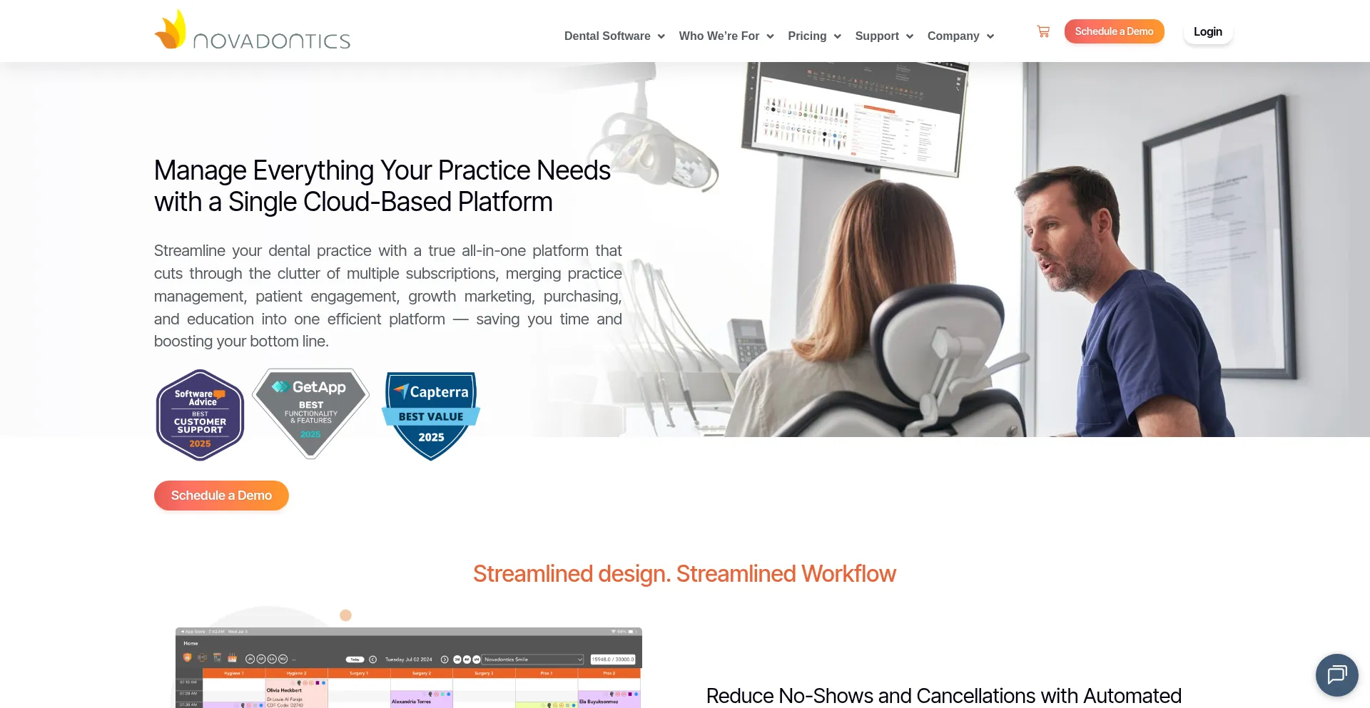 novadontics.com 拥有可用的 iOS 移动应用程序,表明为 Apple 设备用户提供跨平台可访问性。
