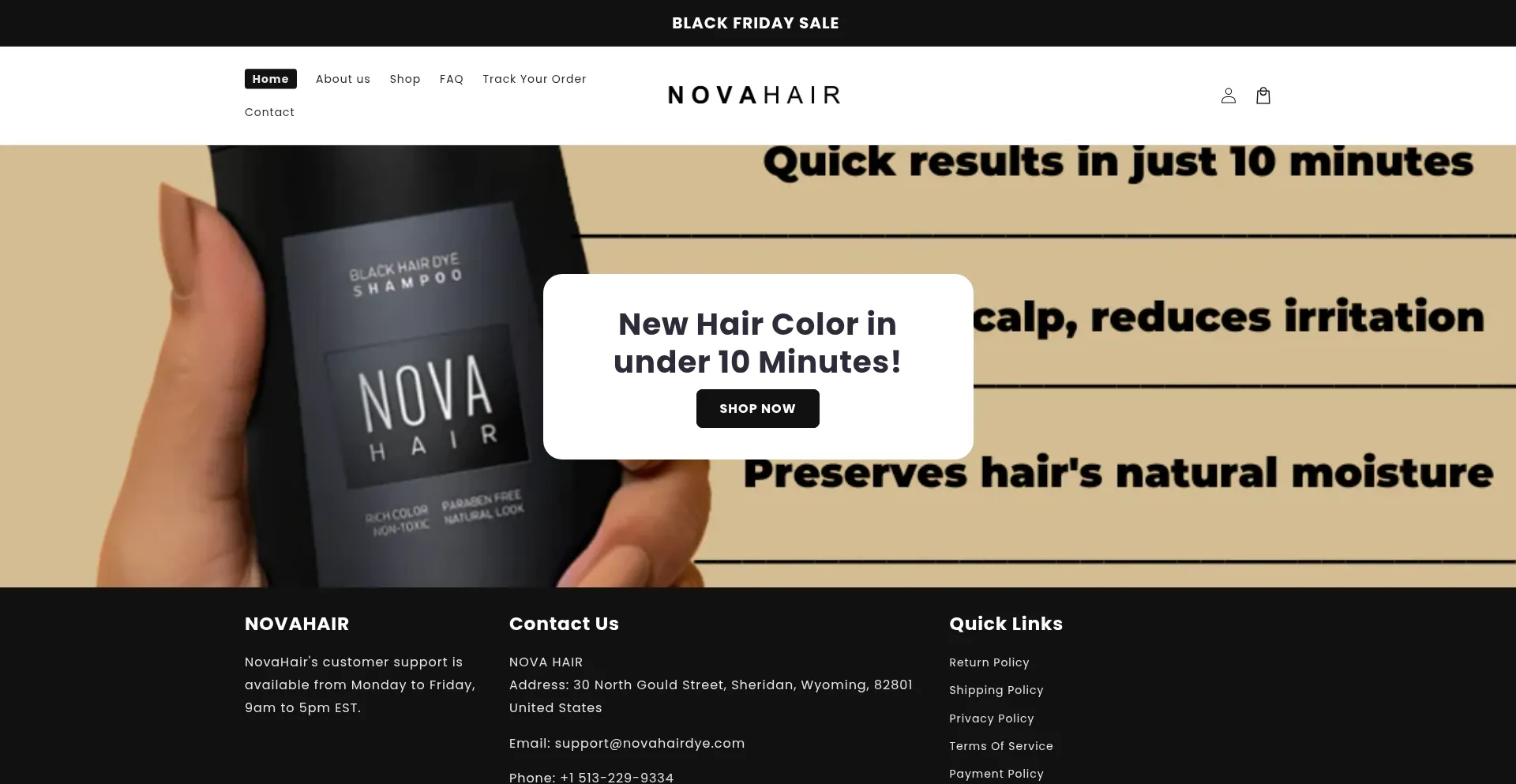 我们的分析器确定网站 novahairdye.com 使用的是 Shopify CMS。Shopify 是一个流行的电子商务平台,全球约有 4.4% 的网站使用 Shopify。Shopify 通常确保购物体验的安全性,但访问者应小心某些第三方集成,因其若未经适当验证,可能会带来安全风险。
