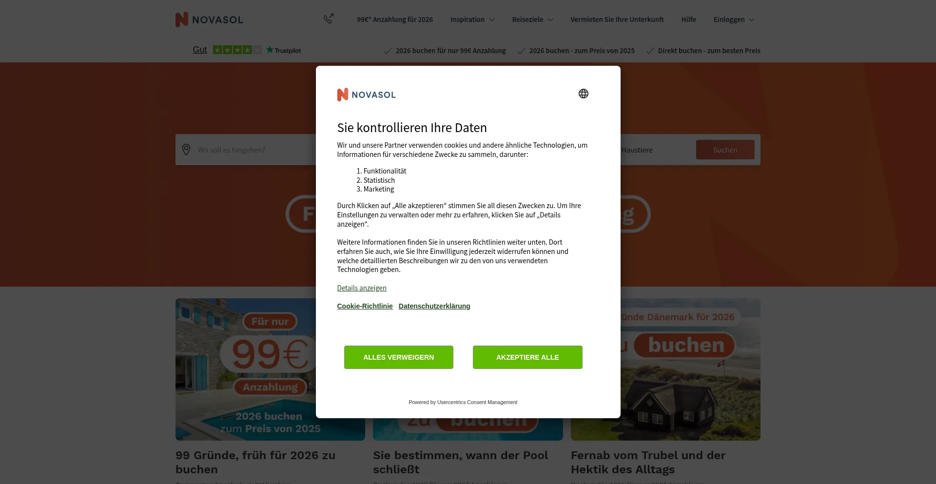 Aus 50.000 Ferienhäusern in Europa wählen, denn es gibt 99 Gründe, bei NOVASOL zu buchen. Urlaub für 2026 mit einer Anzahlung von nur 99€* sichern.