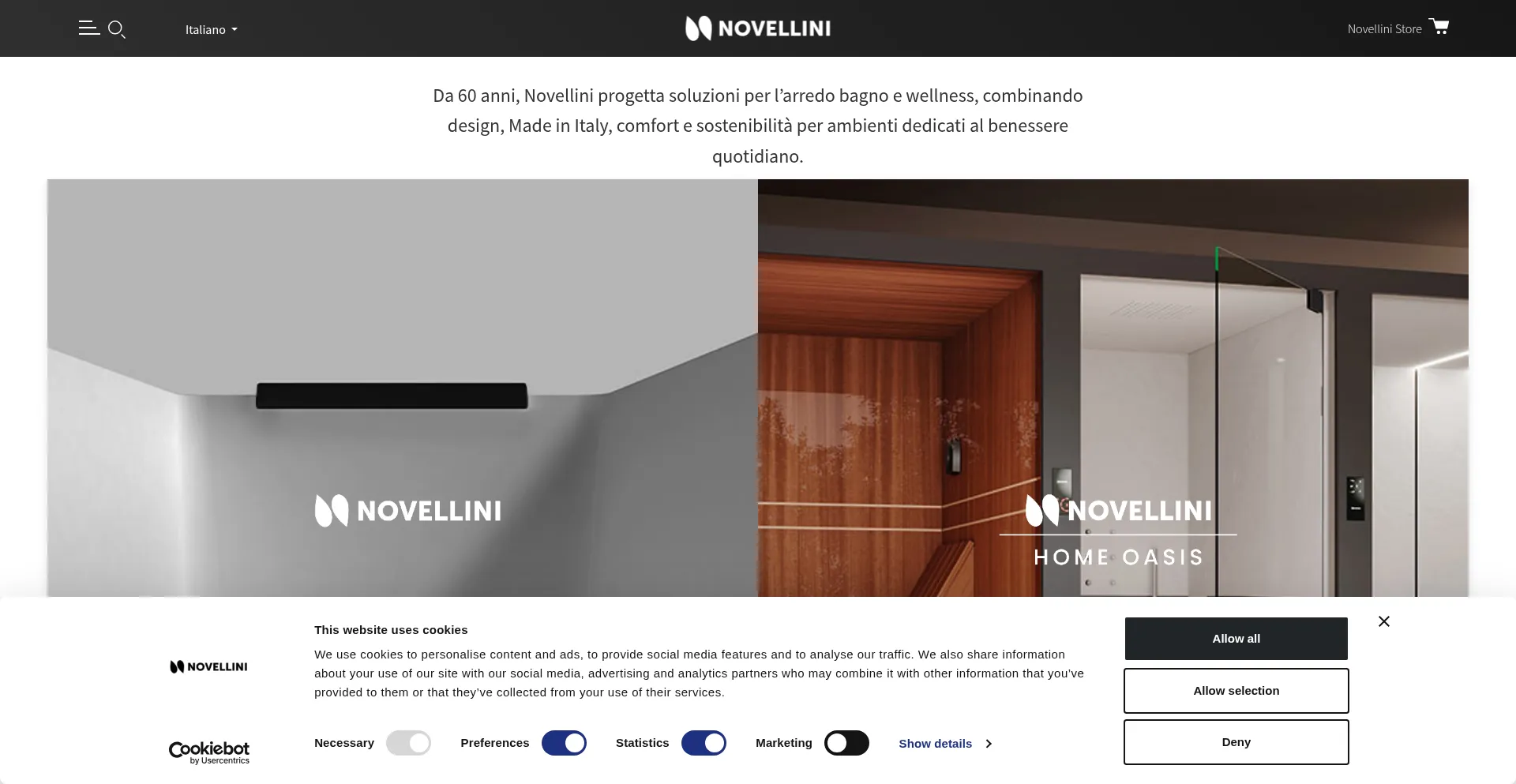 该网站实现符合GDPR或CCPA等隐私法规的cookie同意机制。这表明 novellini.it 遵守数据保护标准并为用户提供对个人数据收集实践的控制。