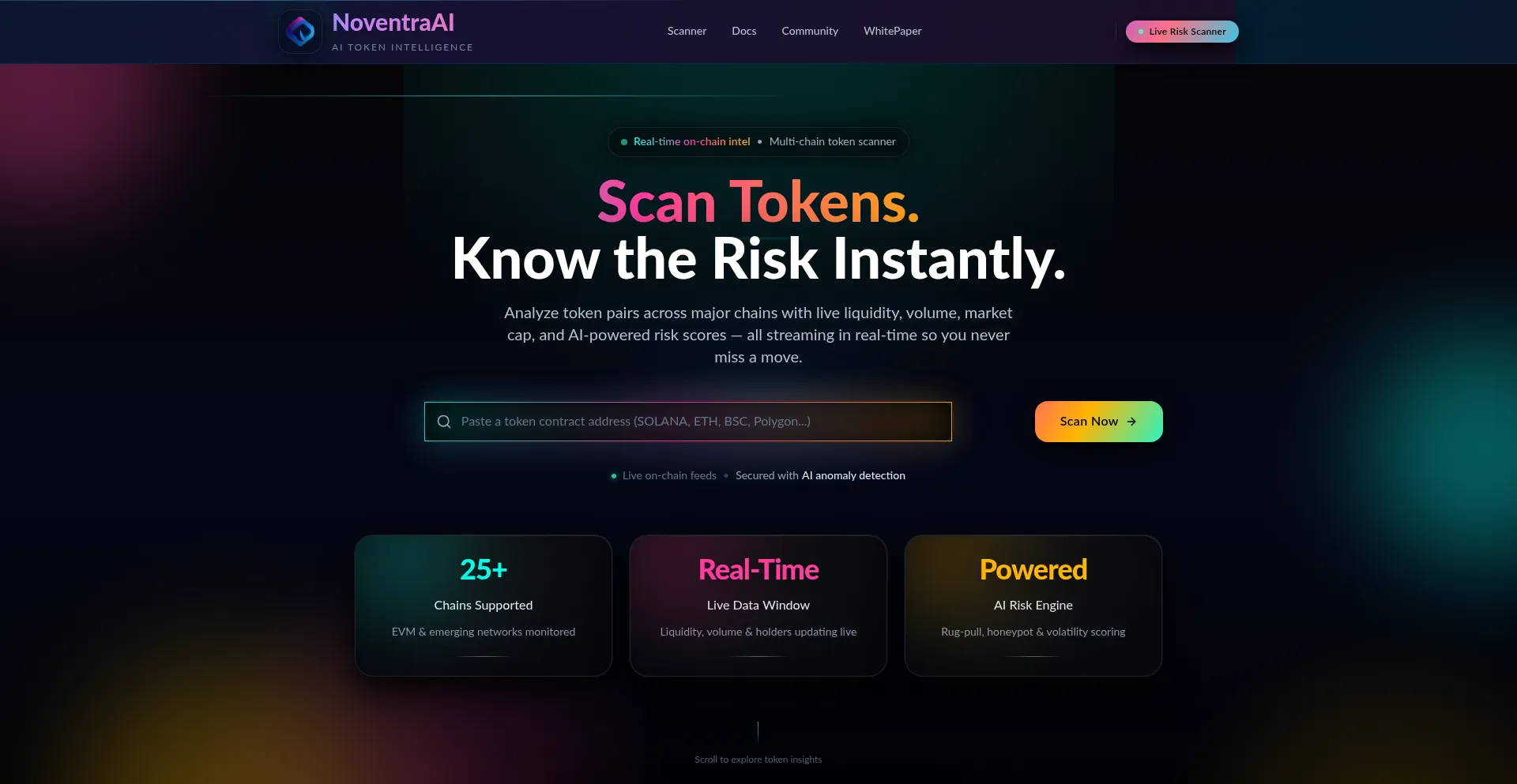 Analyze token pairs across major chains with live liquidity, volume, market cap, and AI-powered risk scores — all streaming in real-time so you never miss a move.