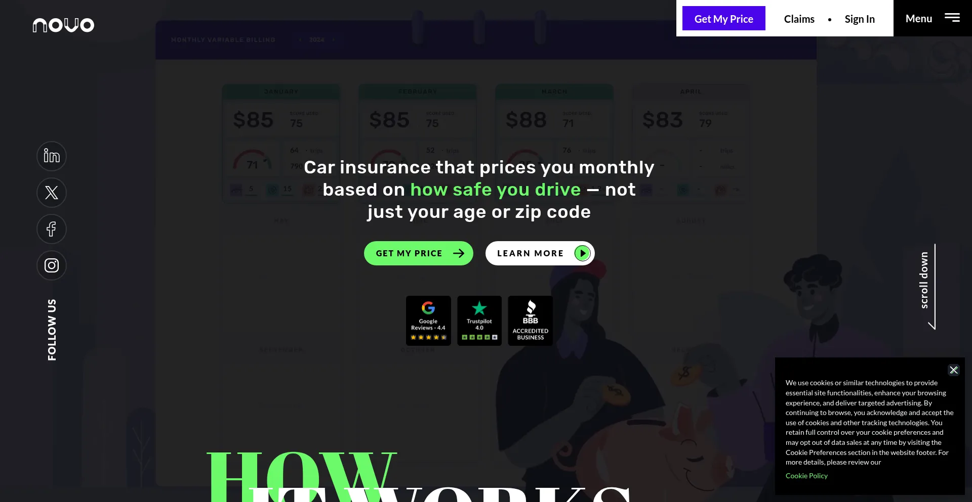 Pay as you drive auto insurance powered by real-time driving behavior. Drive your own rate with usage-based car insurance quotes from Novo Insurance.