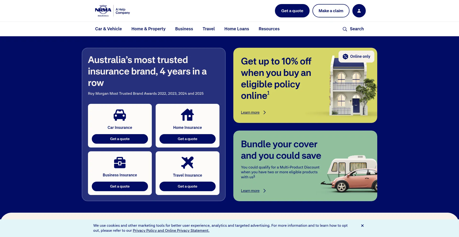 该网站实现符合GDPR或CCPA等隐私法规的cookie同意机制。这表明 nrma.com.au 遵守数据保护标准并为用户提供对个人数据收集实践的控制。