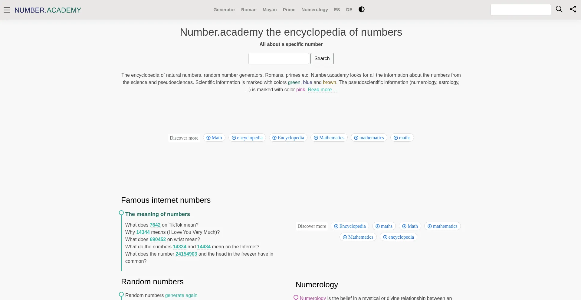 The encyclopedia of natural numbers, random number generators, Roman numbers, prime numbers etc. All about natural numbers: basic and advanced mathematics, computing, codes and ...