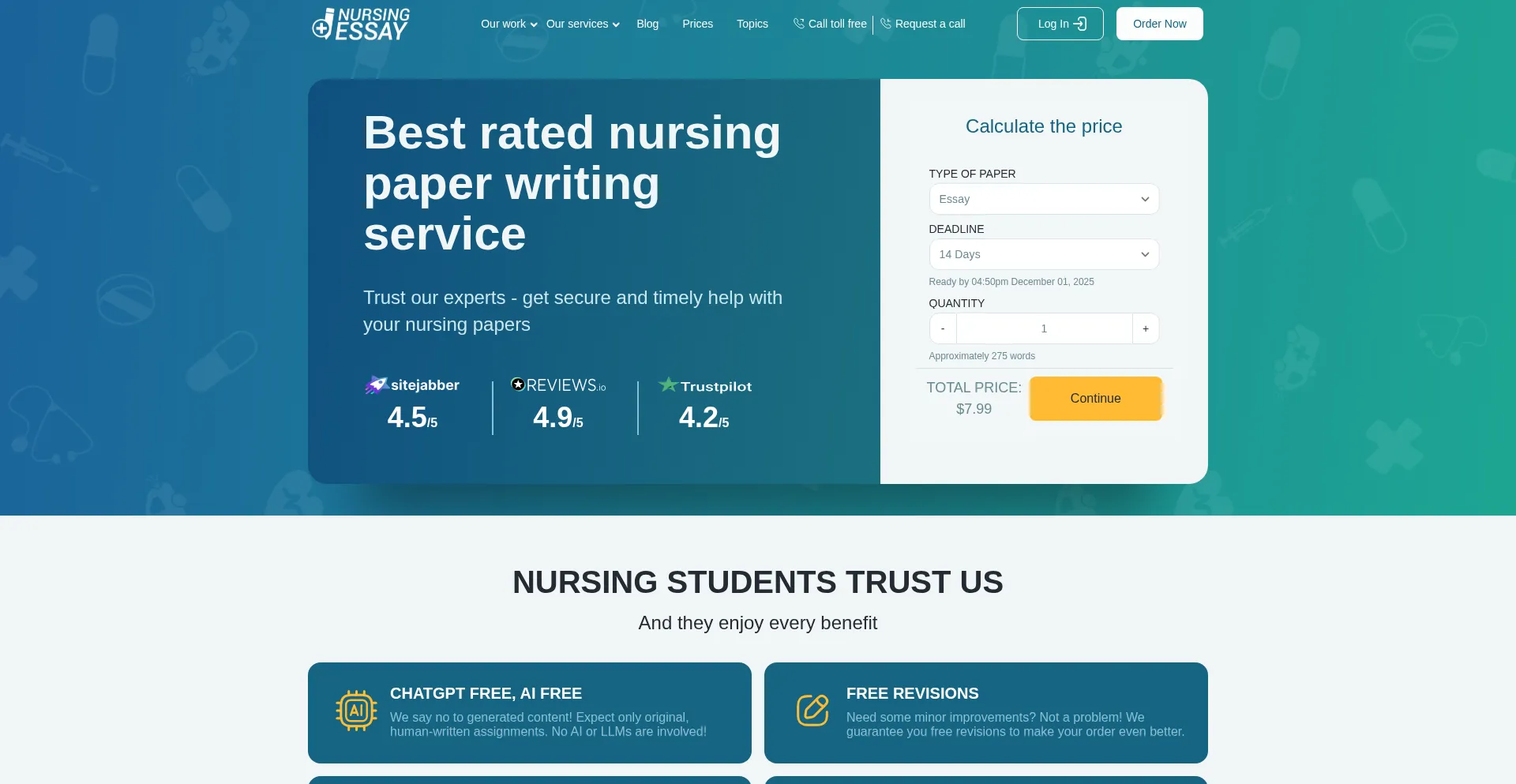 Nursing Essay Writing Service ⚕️ Write My Nursing Essay at $7.99/page | Nursingessaywriting.com