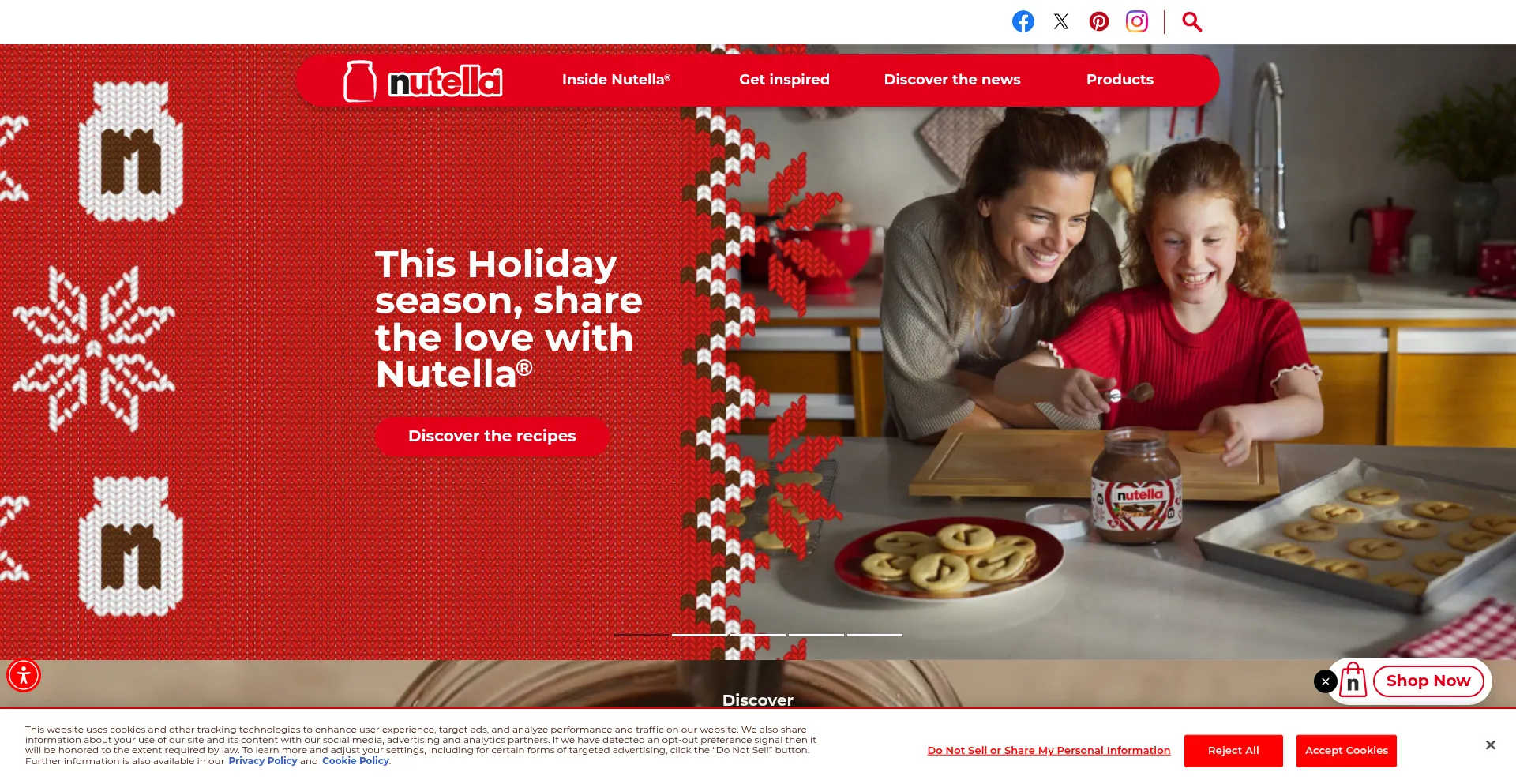 该网站实现符合GDPR或CCPA等隐私法规的cookie同意机制。这表明 nutella.com 遵守数据保护标准并为用户提供对个人数据收集实践的控制。