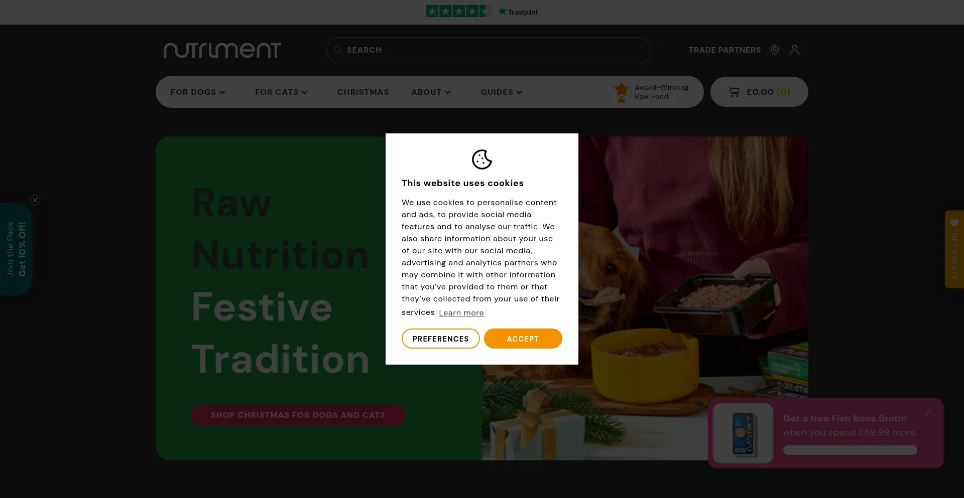 该网站实现符合GDPR或CCPA等隐私法规的cookie同意机制。这表明 nutriment.co.uk 遵守数据保护标准并为用户提供对个人数据收集实践的控制。