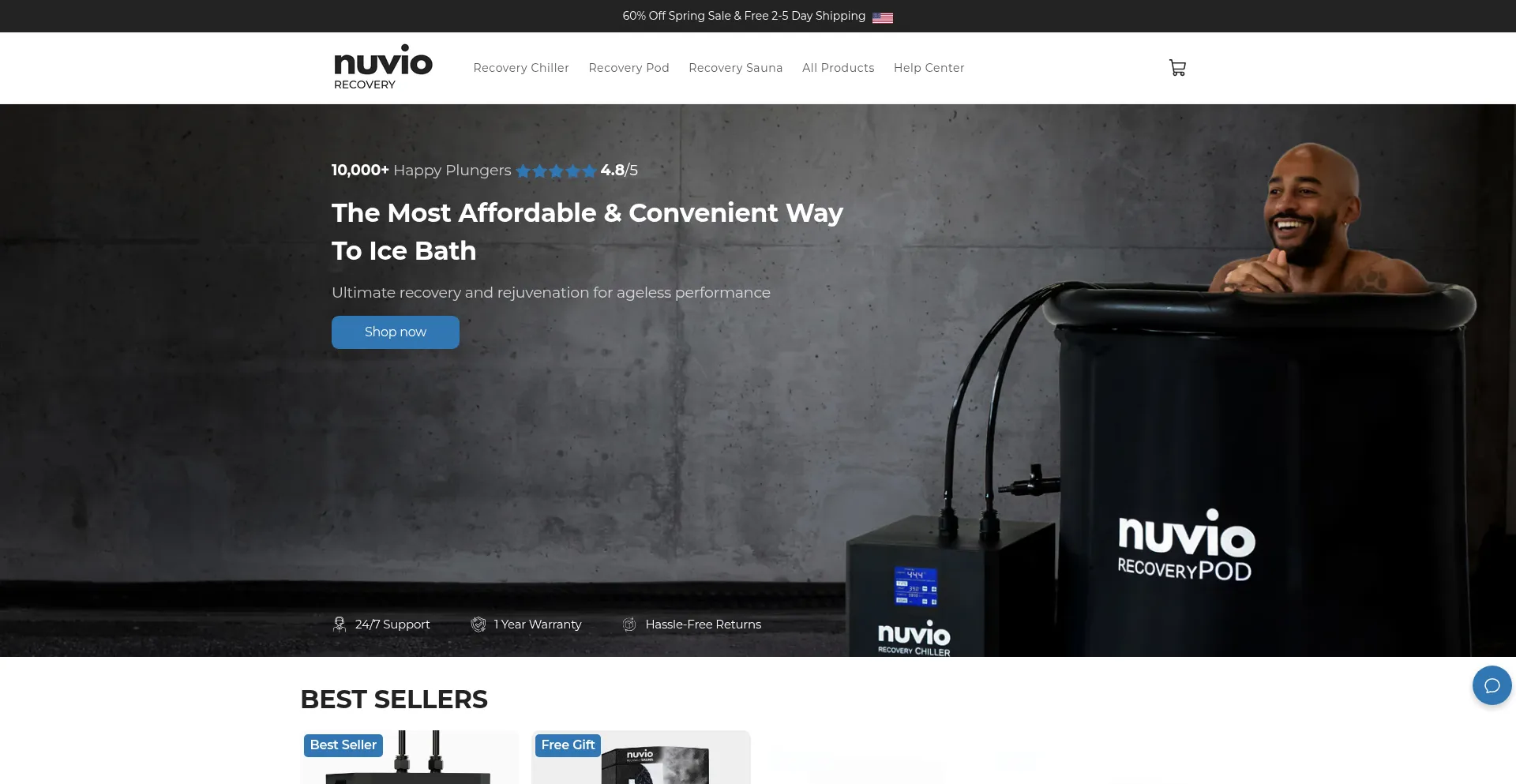 Experience affordable, convenient cold therapy with Nuvio's Recovery Chiller—turn any tub into a 39°F ice bath for optimal muscle recovery & reduced inflammation.