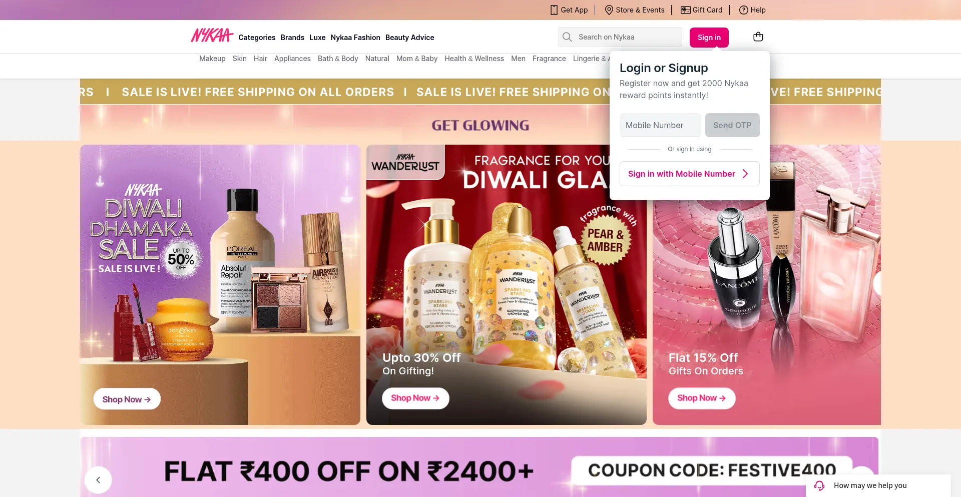 该网站利用流行产品名称和品牌来吸引流量并产生用户兴趣。这些产品可能通过促销活动或折扣策略提供,旨在增加 nykaa.com 的访客参与度和转化率。