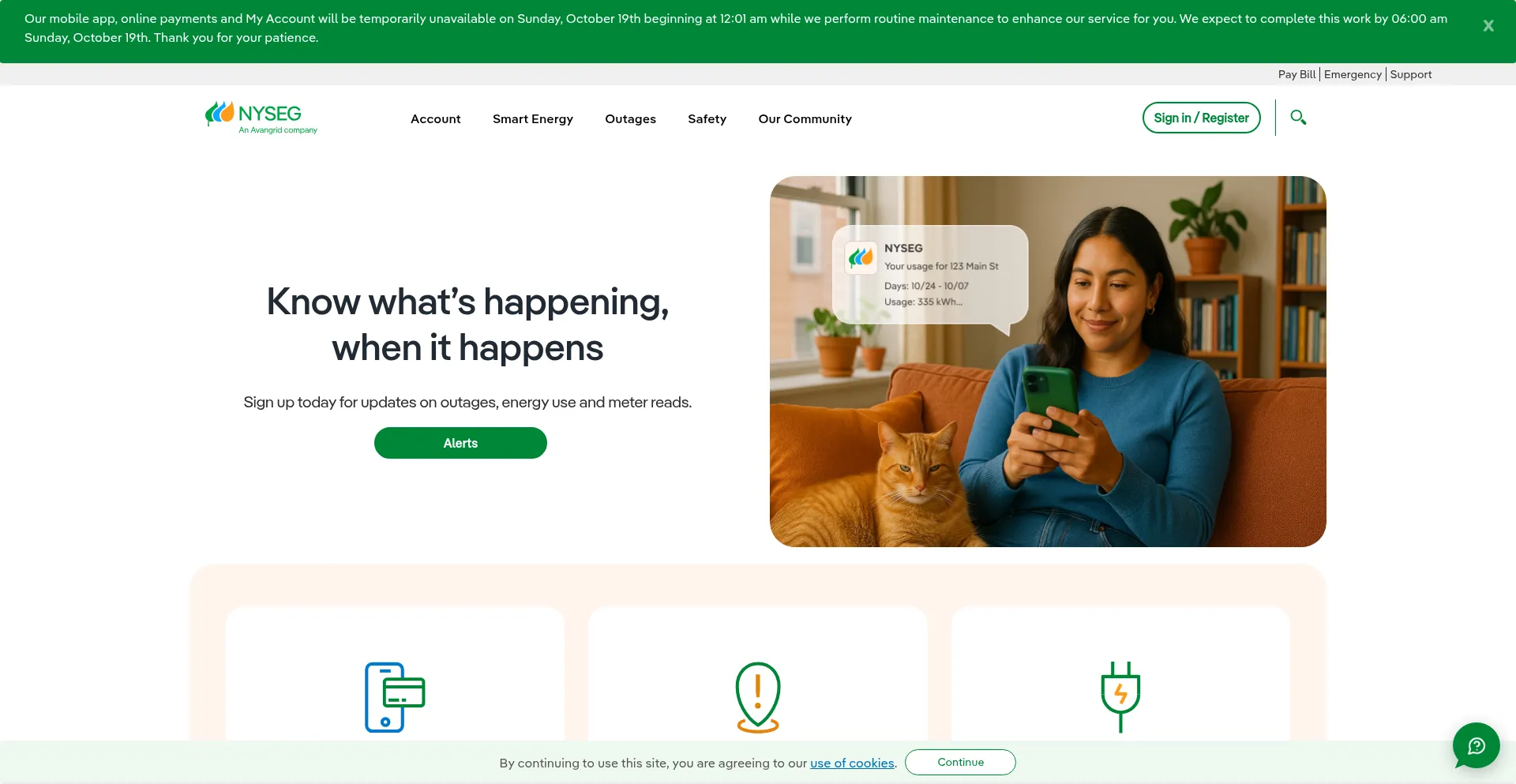 nyseg.com 拥有可用的 iOS 移动应用程序,表明为 Apple 设备用户提供跨平台可访问性。