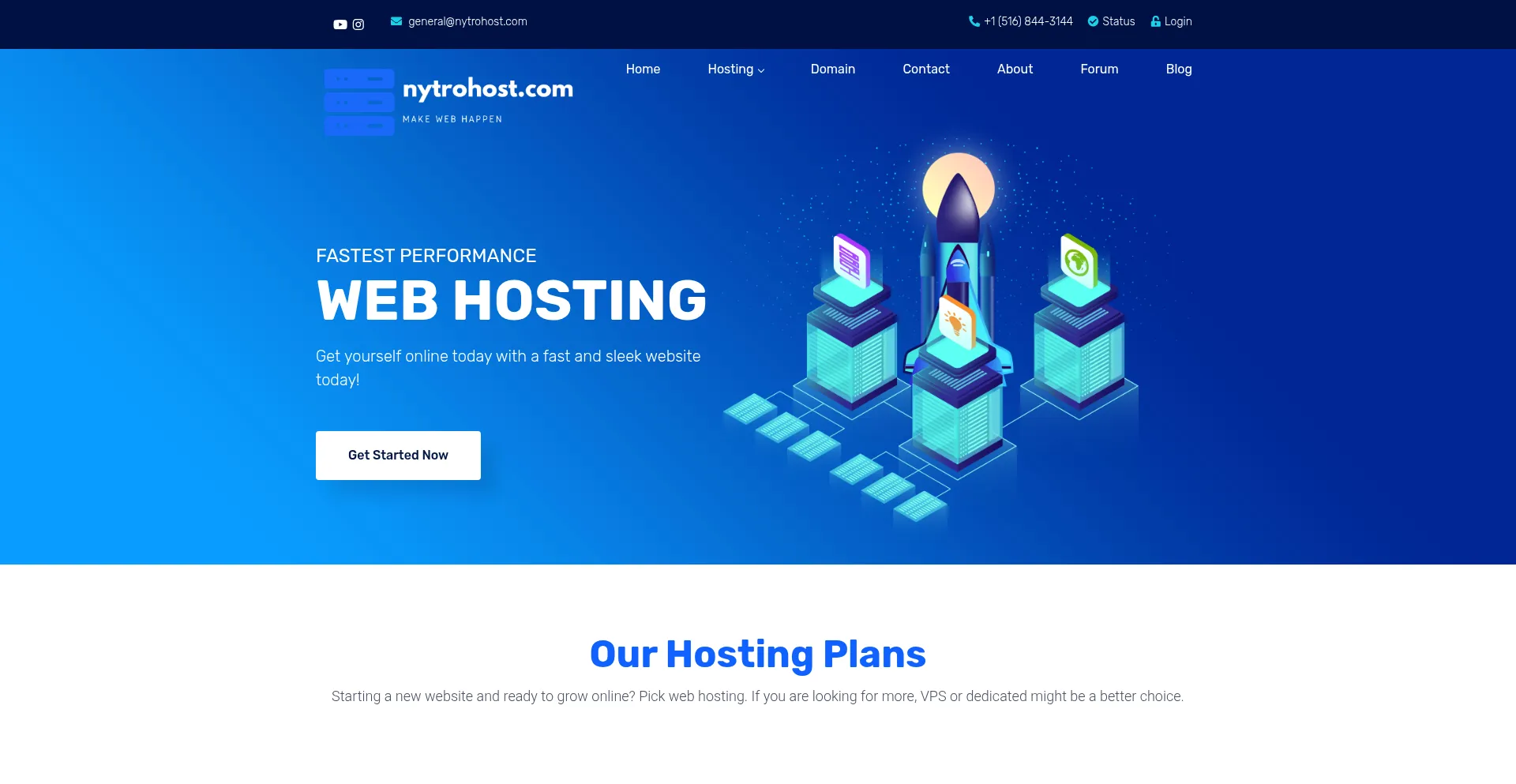 网站上存在社交媒体链接表明 nytrohost.com 在社交媒体上维护官方账户,这是可信度和参与度的积极信号。