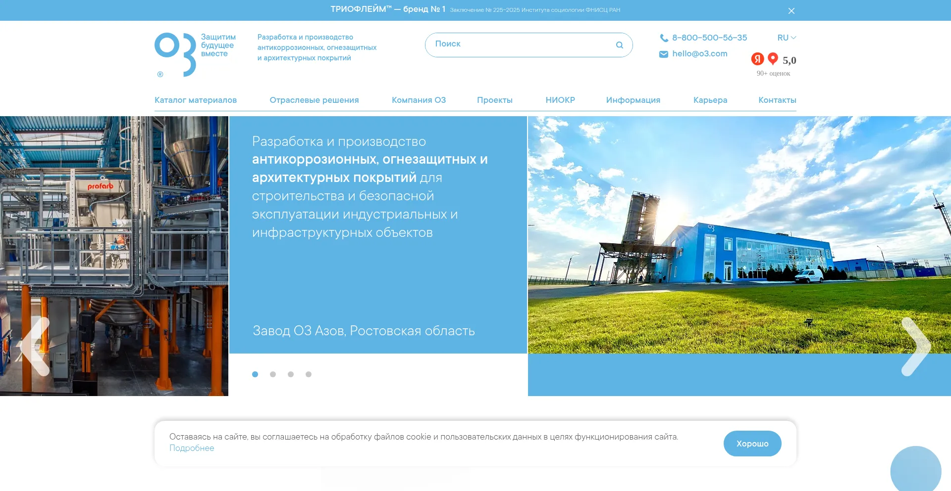 Компания О3 – ведущий российский разработчик и производитель антикоррозионных и огнезащитных л...