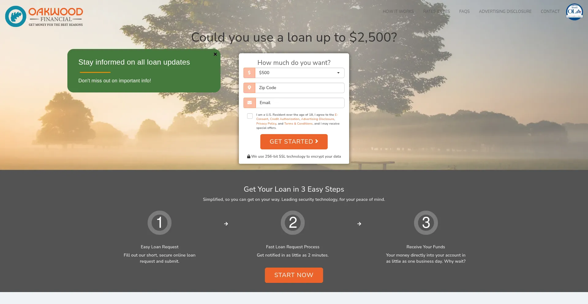 该网站实现数据收集表单,请求个人信息,包括姓名、电子邮件地址、电话号码或其他敏感详细信息。用户应验证 oakwood-financial.com 的合法性并在提交个人数据前查看隐私政策。