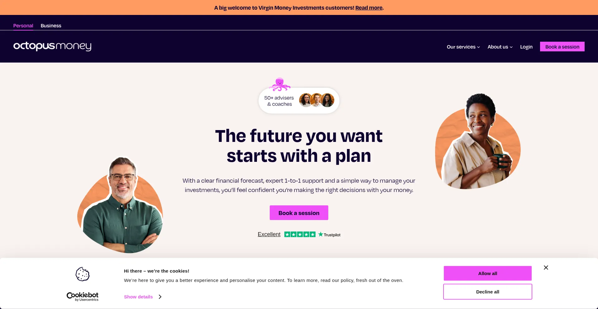 该网站实现符合GDPR或CCPA等隐私法规的cookie同意机制。这表明 octopusmoney.com 遵守数据保护标准并为用户提供对个人数据收集实践的控制。