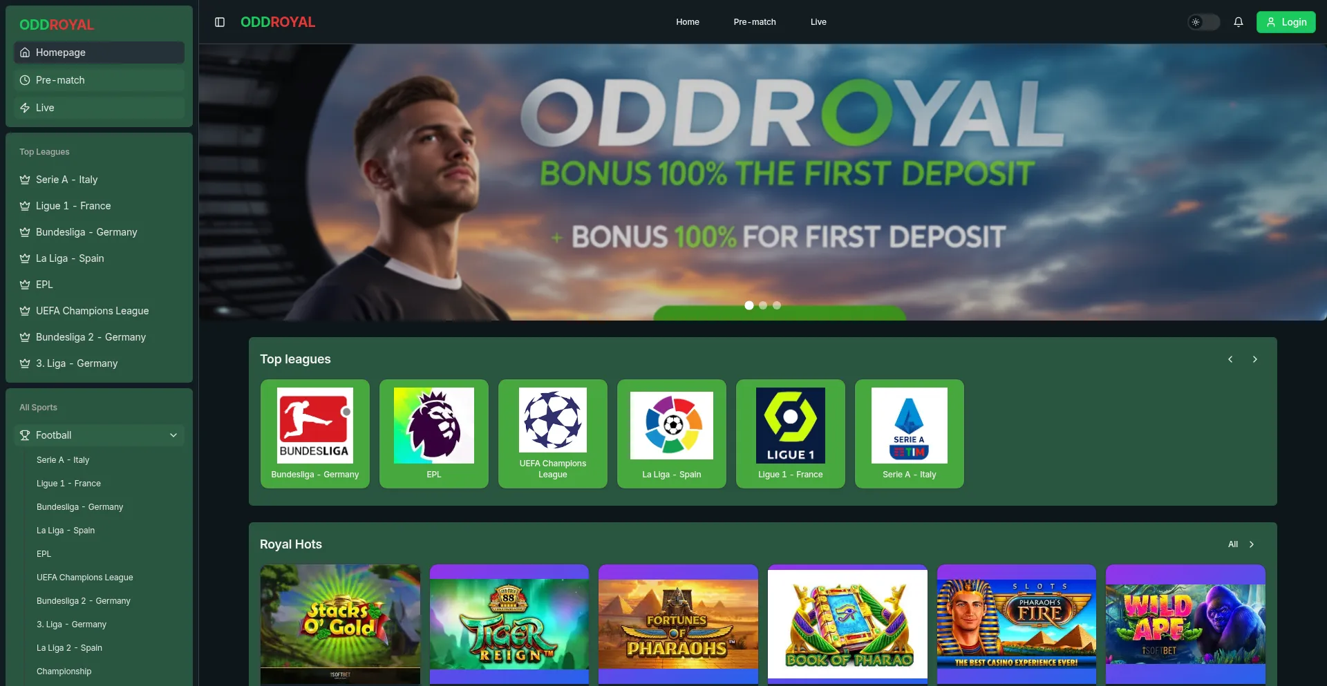 OddRoyal offers premium sports betting with live odds, real-time scores, and secure betting features. Bet on football and more with competitive odds.