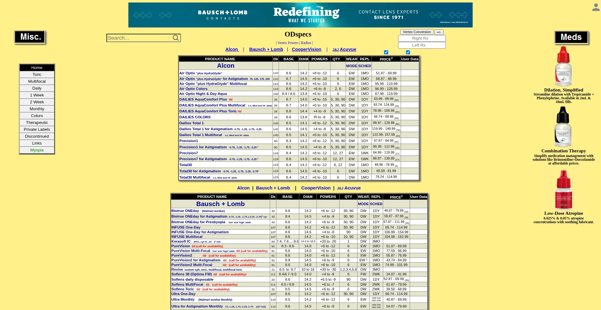 ODspecs.com presents contact lens parameters, contact lens powers, contact lens base curves, which can be accessed with one or two clicks (at most).