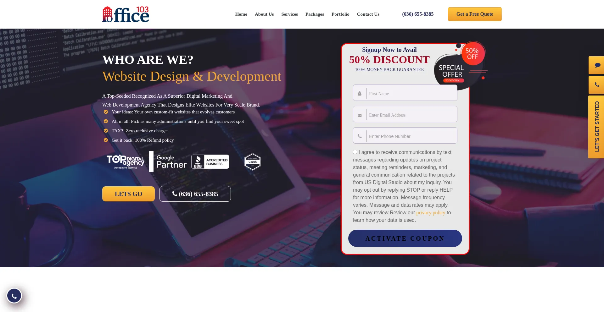 该网站实现数据收集表单,请求个人信息,包括姓名、电子邮件地址、电话号码或其他敏感详细信息。用户应验证 office103.com 的合法性并在提交个人数据前查看隐私政策。