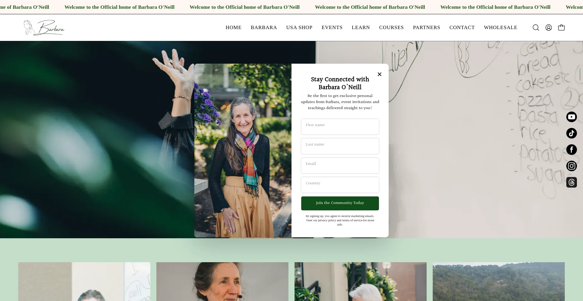 该网站实现数据收集表单,请求个人信息,包括姓名、电子邮件地址、电话号码或其他敏感详细信息。用户应验证 officialbarbaraoneill.com 的合法性并在提交个人数据前查看隐私政策。