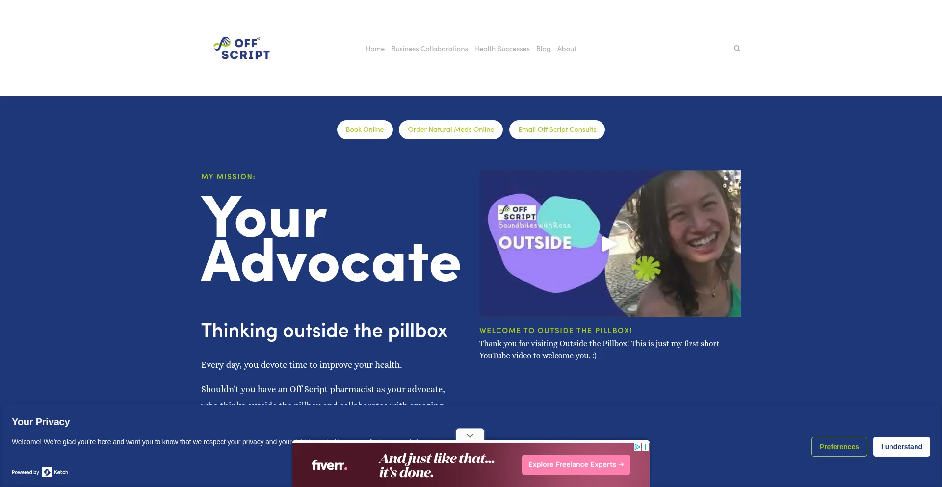 Thinking outside the pillbox. Have an Off Script consultant pharmacist as your advocate to help you achieve your goals!