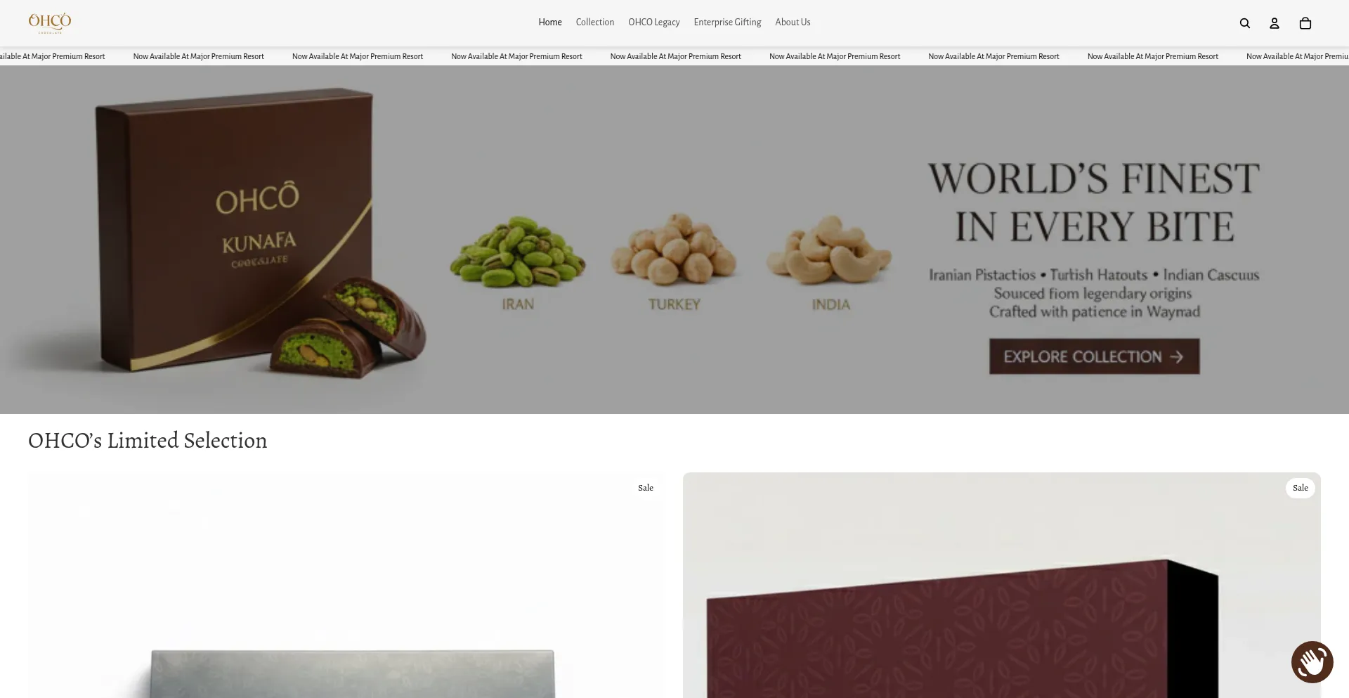 Discover OHCÓ artisan chocolate fusions with California pistachios, Turkish hazelnuts & Grade A cashews. Premium gift chocolate | Handcrafted luxury.