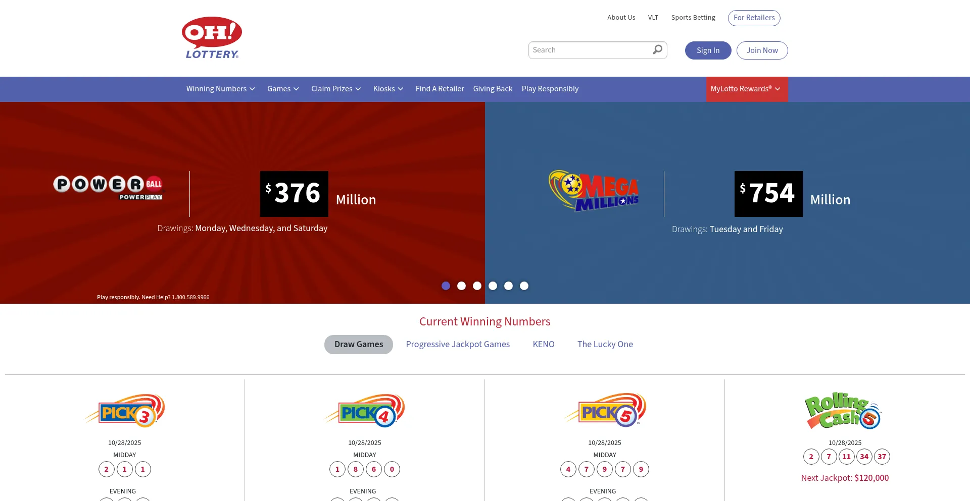 网站上存在社交媒体链接表明 ohiolottery.com 在社交媒体上维护官方账户,这是可信度和参与度的积极信号。