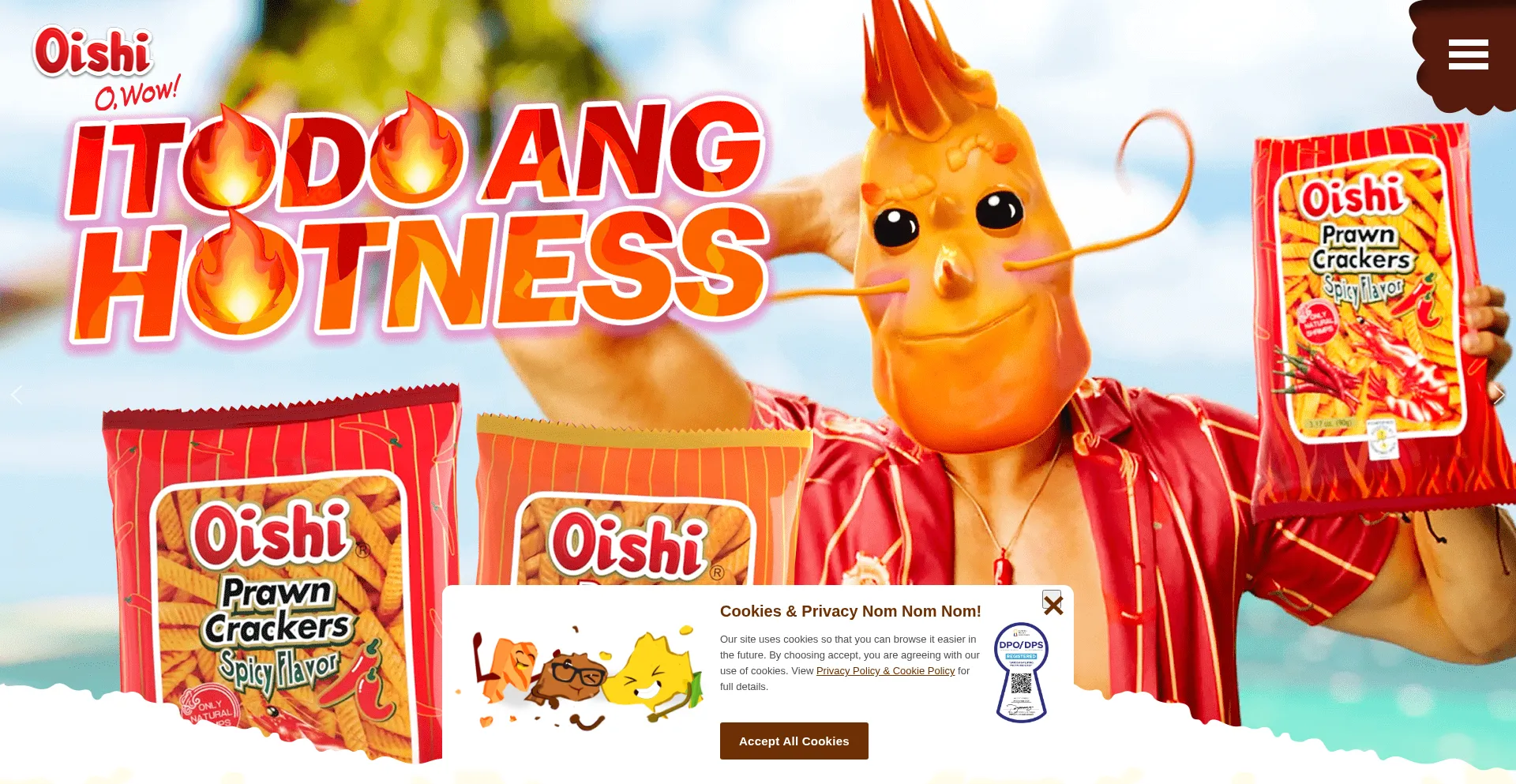 网站上存在社交媒体链接表明 oishi.com.ph 在社交媒体上维护官方账户,这是可信度和参与度的积极信号。
