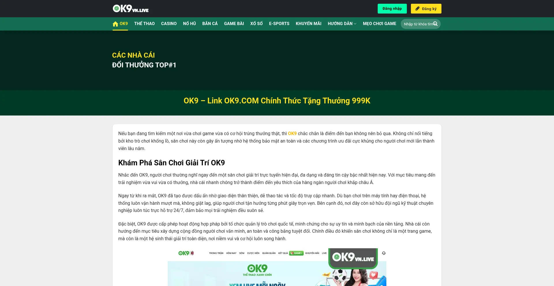 OK9 - Trang chủ OK9.COM Mới Update Nhận Thưởng 99K