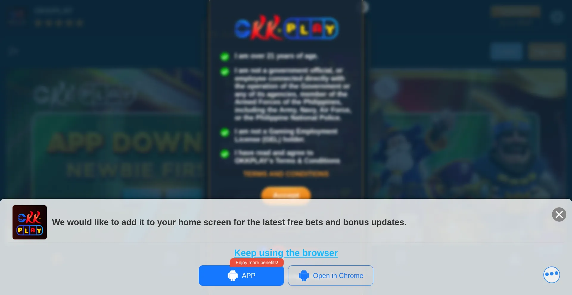 网站 okkplay.com 被配置为一个带有移动应用功能的网络应用。用户可以直接将该网站安装到设备的桌面上,以快速访问并享受类似移动应用的体验。