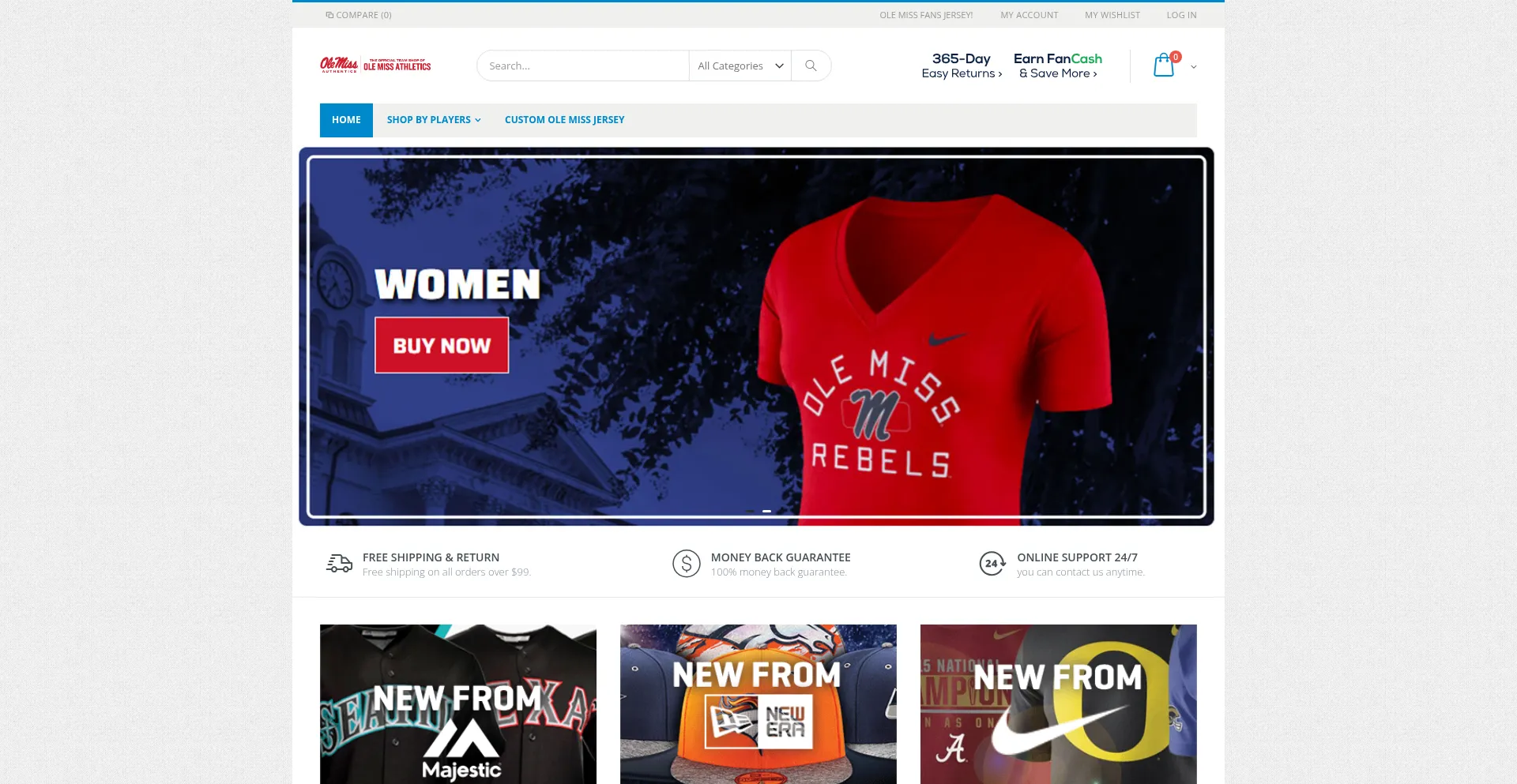 该网站利用流行产品名称和品牌来吸引流量并产生用户兴趣。这些产品可能通过促销活动或折扣策略提供,旨在增加 olemissfansjersey.com 的访客参与度和转化率。