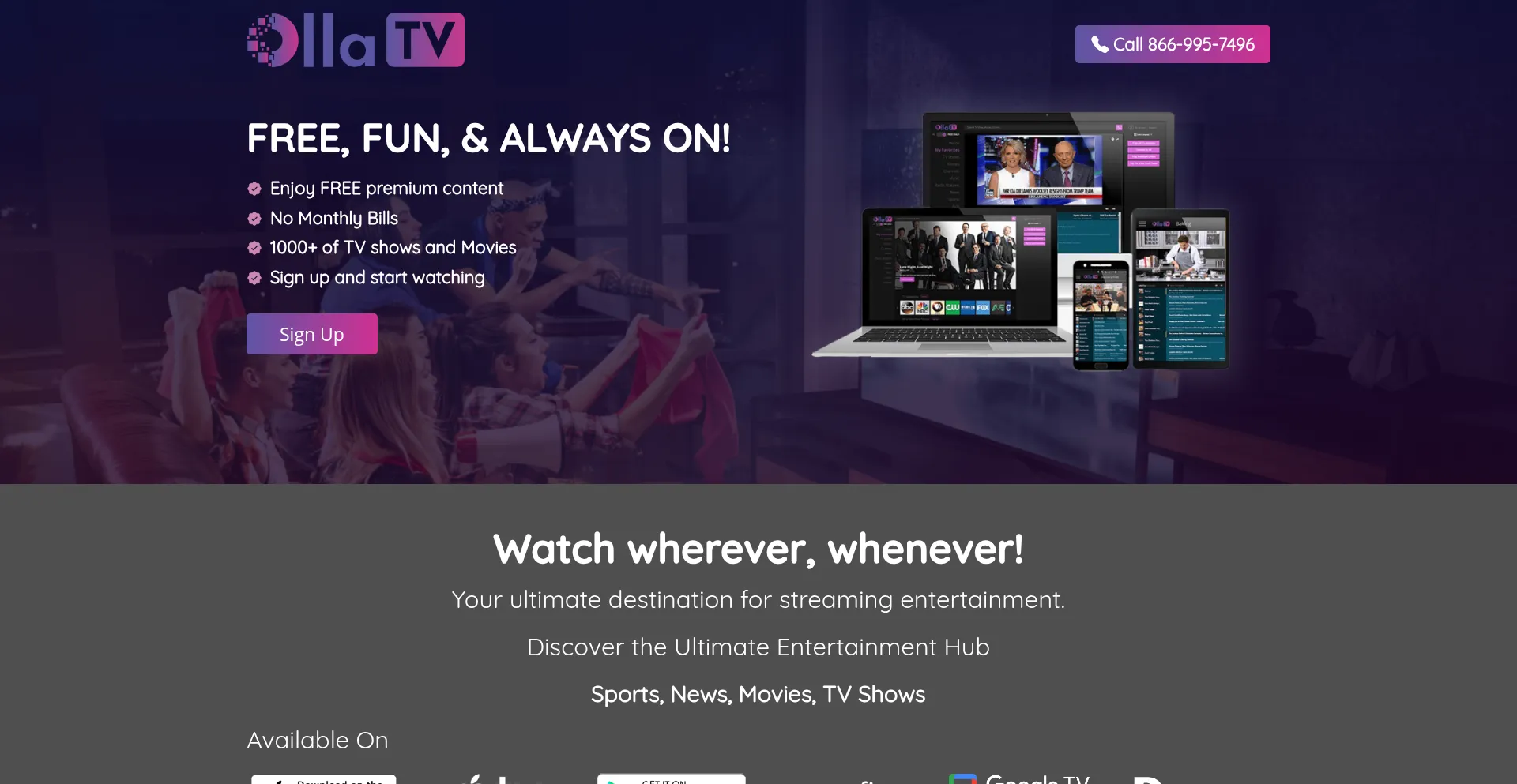 该网站实现数据收集表单,请求个人信息,包括姓名、电子邮件地址、电话号码或其他敏感详细信息。用户应验证 olla.tv 的合法性并在提交个人数据前查看隐私政策。
