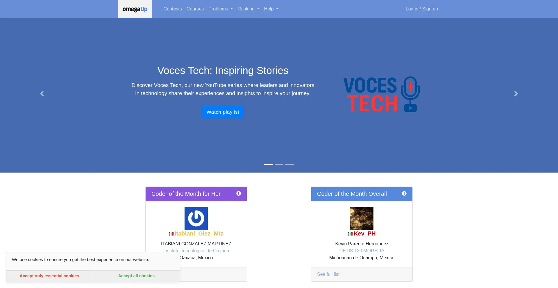 该网站实现符合GDPR或CCPA等隐私法规的cookie同意机制。这表明 omegaup.com 遵守数据保护标准并为用户提供对个人数据收集实践的控制。