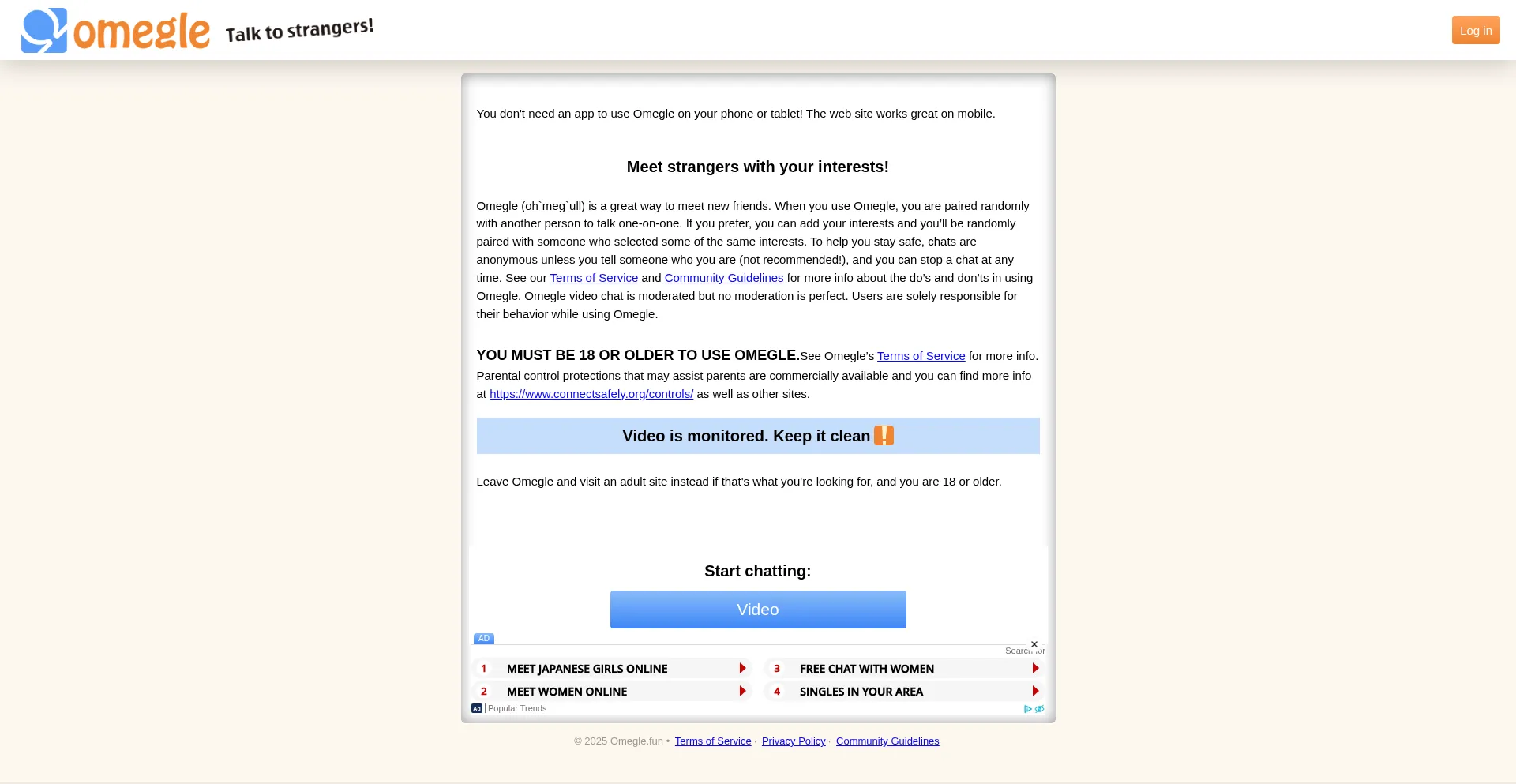 New Omegle Talk To Strangers is a free random video chat site where you meet strangers 1-on-1 on Omegle TV and have fun.