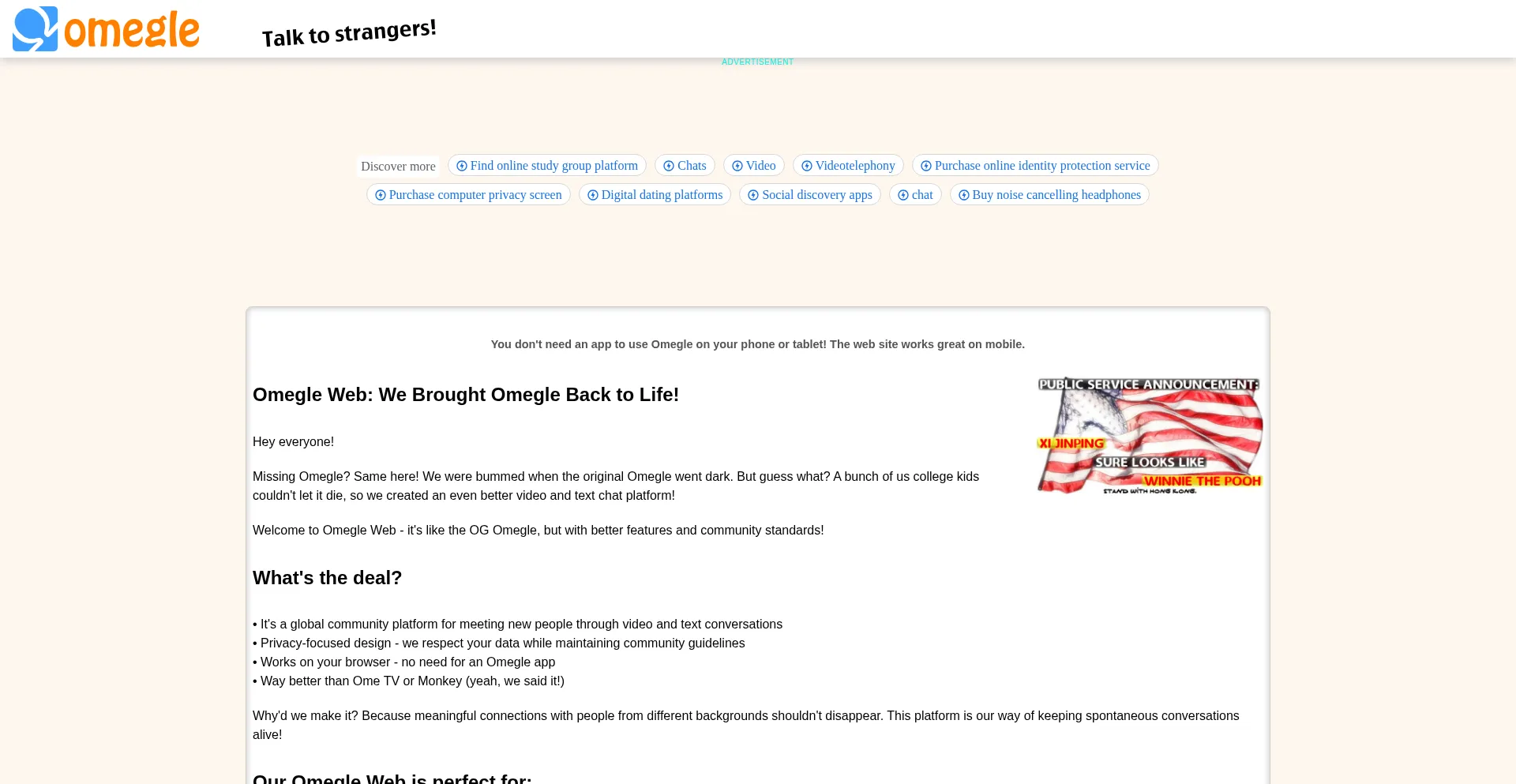 Omegle alternative: Anonymous video, text & voice chats with strangers. Experience random connections safely. Modern platform for thrilling encounters online.